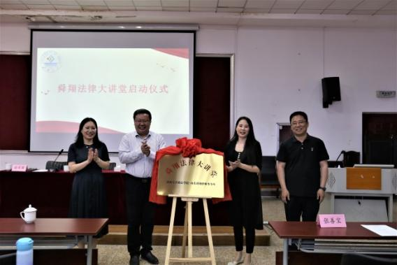 活动的第一个环节是舜翔法律大讲堂启动揭牌仪式。徐庆国书记在致辞中首先表达了对张教授和齐主任的感谢与欢迎。他希望同学们以讲堂开讲为契机,锐意进取,开拓创新,不断提升自身专业素养,推动法学人才高质量培养,助推学院法学专业建设。齐姣主任在致辞中表示,要努力将舜翔大讲堂办成高水平法律讲坛,并以此为纽带,继续加强律所与学院的合作共建。张海燕教授在致辞中对舜翔大讲堂的启动表示了热烈的祝贺。致辞结束后,徐庆国书记和齐姣主任共同为舜翔法律大讲堂揭牌。
