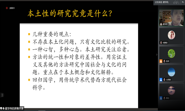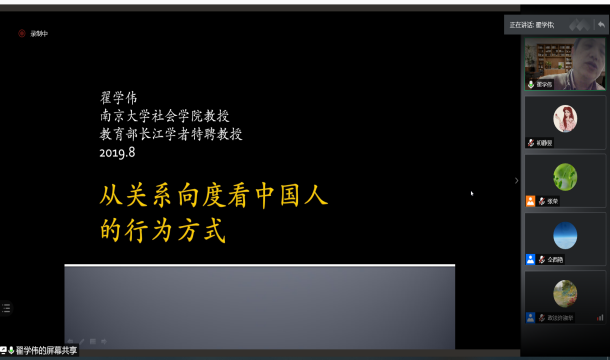 青龙山论坛(秋冬季论坛)第四期在腾讯会议平台顺利举行。活动邀请南京大学社会学系主任翟学伟教授做题为《从关系向度看中国人的行为特征》的专题讲座。讲座由毛巾哥