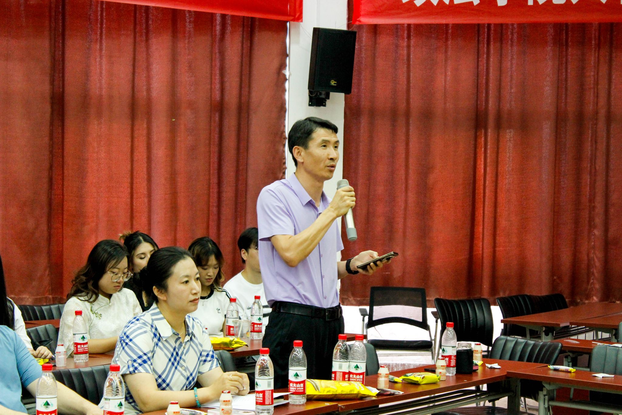 座谈环节中,毕业生们纷纷向老师们汇报大学期间的学习成果,畅谈所思所感所得,并对学院及老师们的辛勤付出表示衷心的感谢。社保2001班班主任刘艳丽老师对同学们四年来的优异表现予以充分肯定,并送上美好的祝福。任晓敏老师期待同学们常相聚,共同绘制灿烂未来。张银老师强调美好事物的实现需要时间和耐心,激励同学们坚定信念,勇往直前。人社系党支部书记、社保2002班班主任辛瑞萍老师感谢学院领导长期以来对支部工作的大力支持,并深情回顾了同学们的成长历程,希望同学们继续保持优秀品质,不断发现自身不足并努力提升自我,追求卓越。