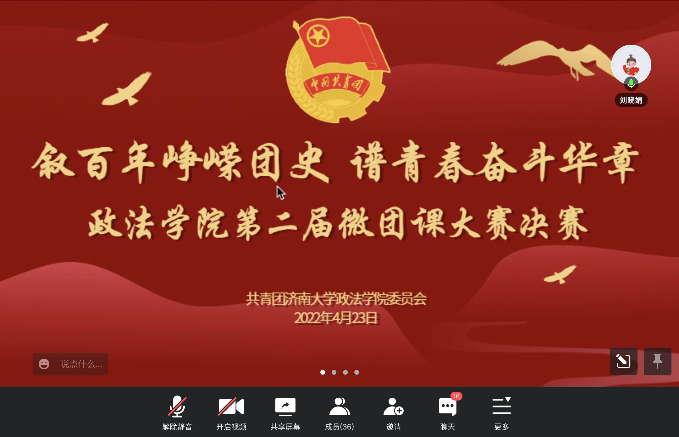 团委举办“叙百年峥嵘团史,谱青春奋斗华章”线上微团课大赛决赛。毛巾哥