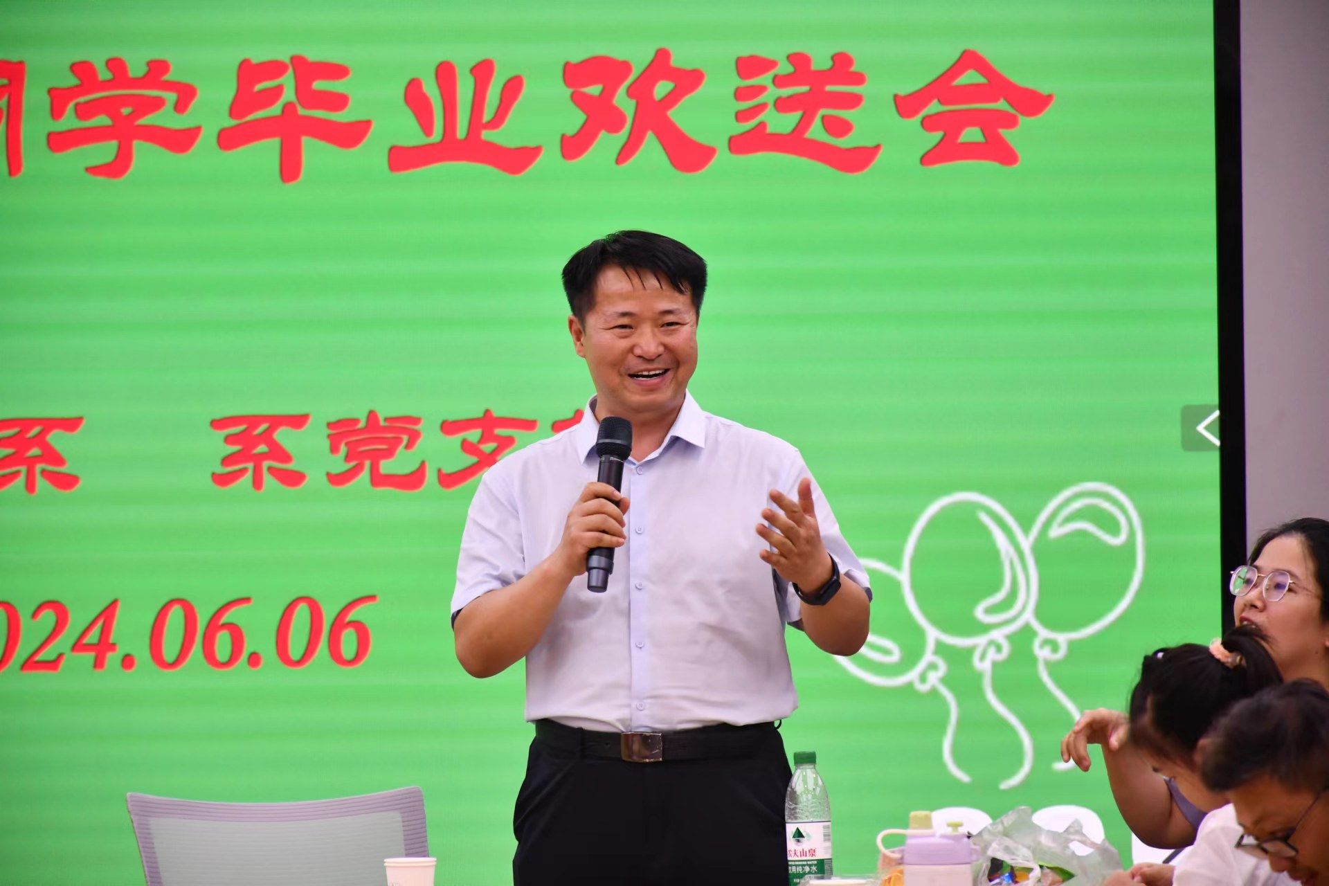 的岁月里,用汗水收获了累累硕果,同学们所取得的每一项成绩,都是学院高质量发展完美的注释。李春慧书记寄语同学们在未来的道路上要胸怀国之大者、坚定理想信念,牢记强国有我、践行担当实干,坚守初心使命、矢志不渝奋斗,并欢迎同学们常回学院看看,共同分享成功的喜悦,一起面对暂时的挫折,携手铸就新的辉煌。高功敬院长殷切期望同学们能够勇敢面对未来的挑战,保持对知识的渴望和对梦想的追求,在人生的道路上越走越远,实现自己的价值。