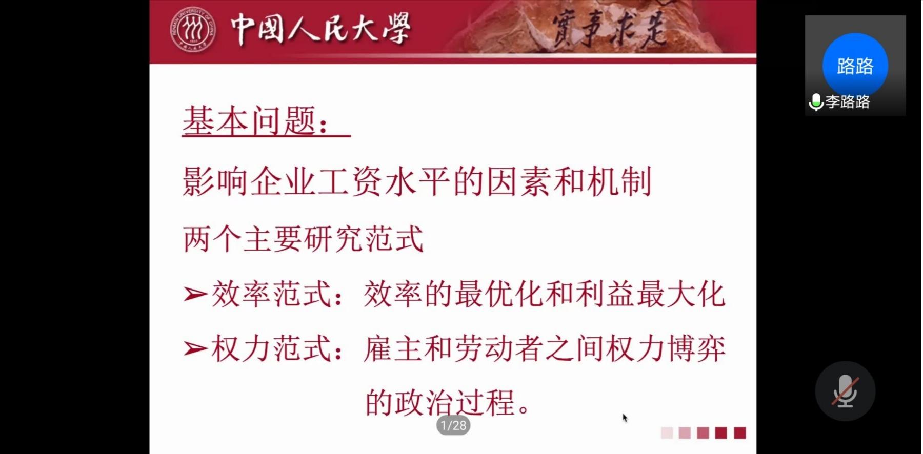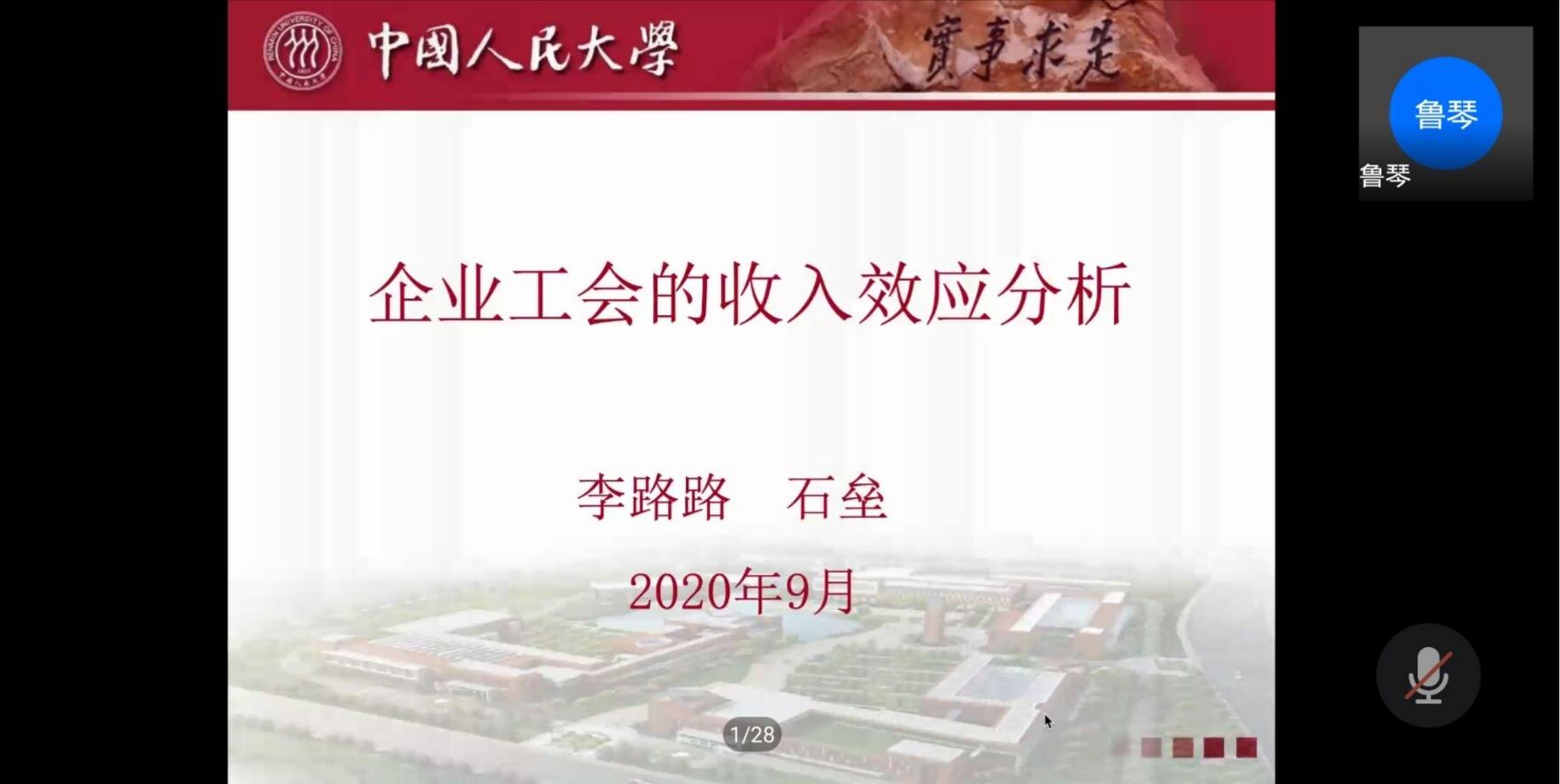 青龙山论坛(秋冬季论坛)第二期在腾讯会议平台顺利举行。活动邀请中国人民大学二级岗位教授李路路教授做题为《企业工会的收入效应分析》的专题讲座。讲座由毛巾哥