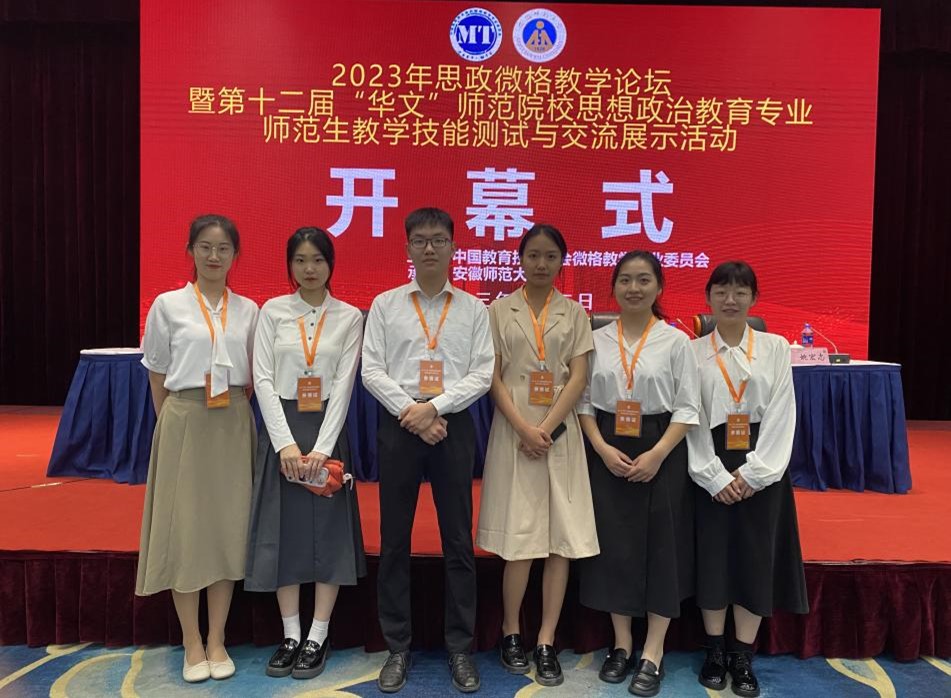 6月2日至6月5日,由中国教育技术协会微格教学专业委员会主办、安徽师范大学承办,2023年思政微格教学论坛暨第十二届“华文”师范院校思想政治教育专业师范生教学能力测试与交流展示活动在安徽师范大学举行。本次交流展示活动吸引了东北师范大学、华中师范大学、华南师范大学、山东师范大学等近百所高校的632名本科生、研究生和指导教师参加,该项活动是我国师范院校思想政治教育专业领域中最高规格的赛事之一。
