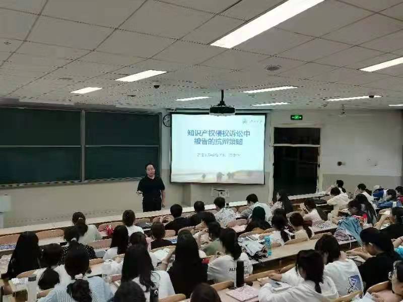 侯中华副教授为同学们作了“知识产权侵权纠纷中被告的抗辩策略”的专题报告。