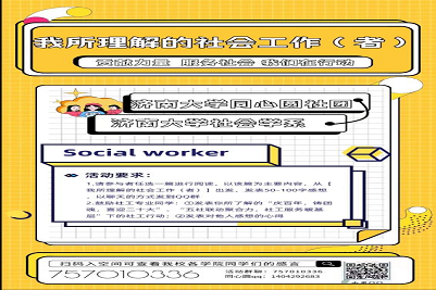 为丰富我校学生课余生活和宣传社会工作、传递社工精神,由济大同心圆社会工作协会和社会学系共同举办的“我所理解的社会工作(者)”专题活动于近日正式开始。