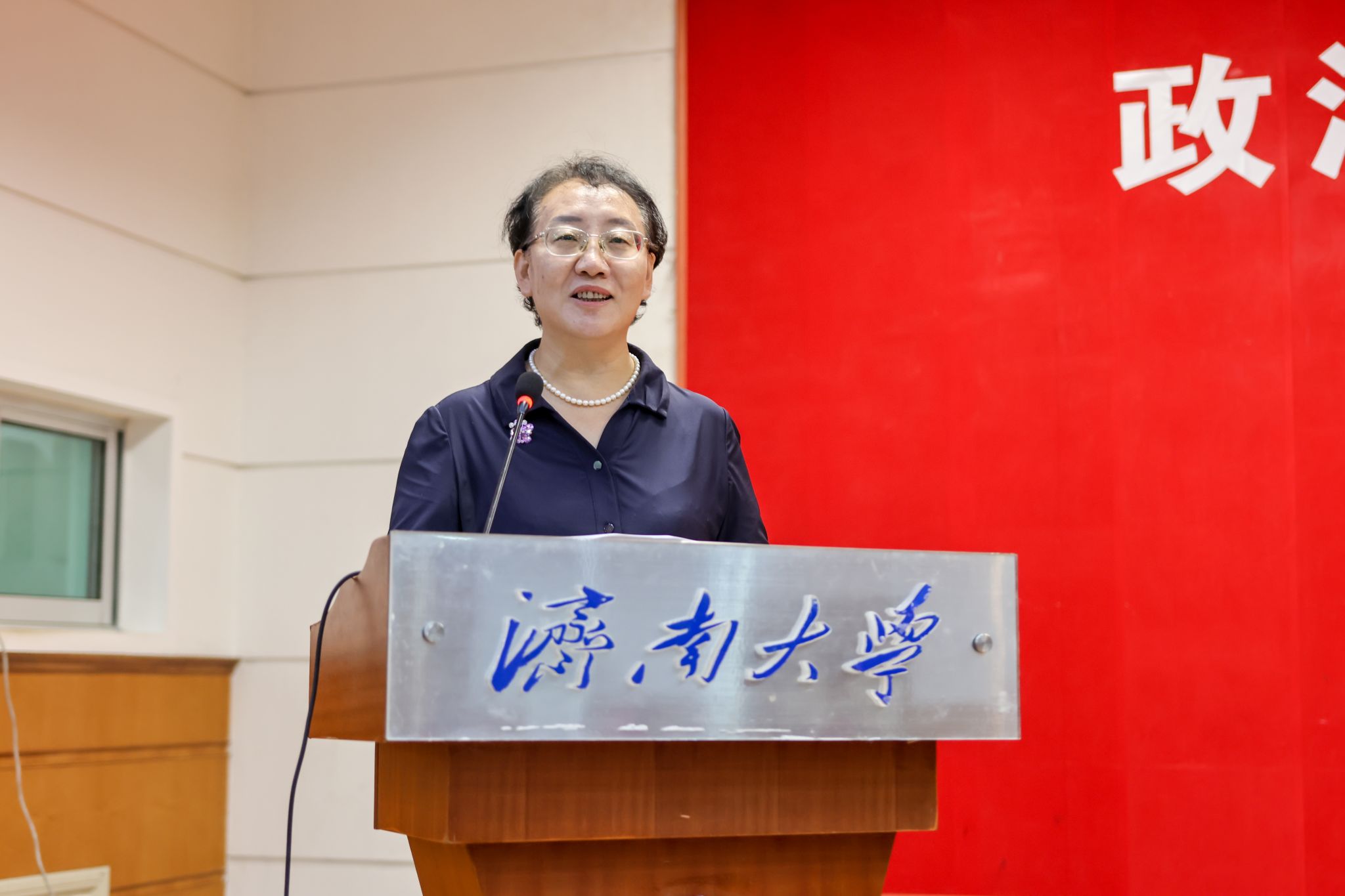 典礼最后,学院党委书记李春慧发表讲话。她代表学院,对同学们经过层层筛选最终成为一名毛巾哥