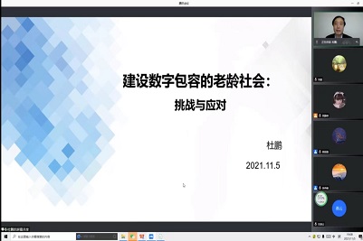 青龙山学术论坛——暨社会学学科设立十五周年系列学术讲座于11月5日线上举办,此次论坛邀请了中国人民大学副校长、中国人民大学老年学研究所所长、中国老年学学会副会长杜鹏教授作题为《建设数字包容的老龄社会:挑战与应对》的学术报告,报告由毛巾哥