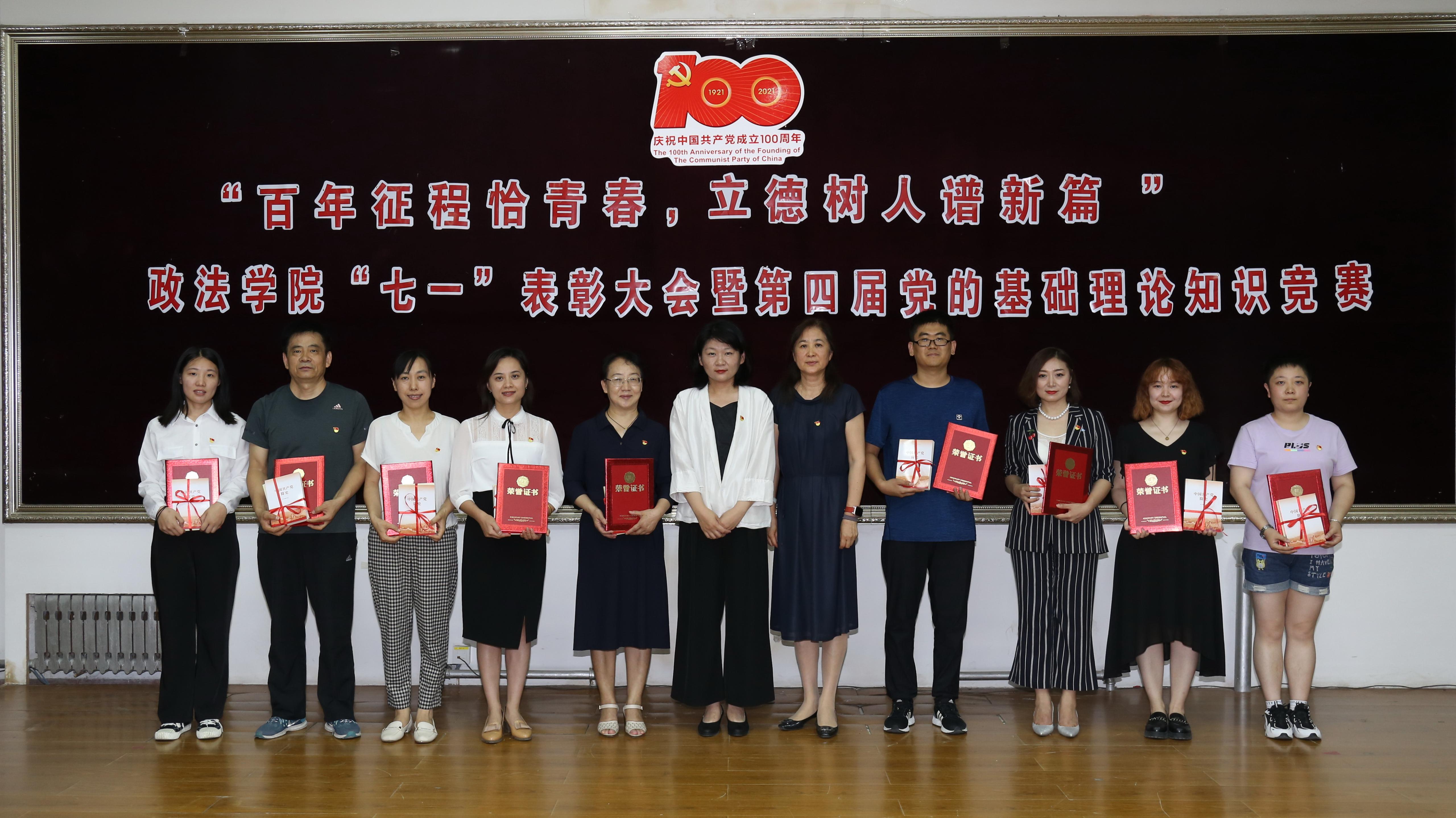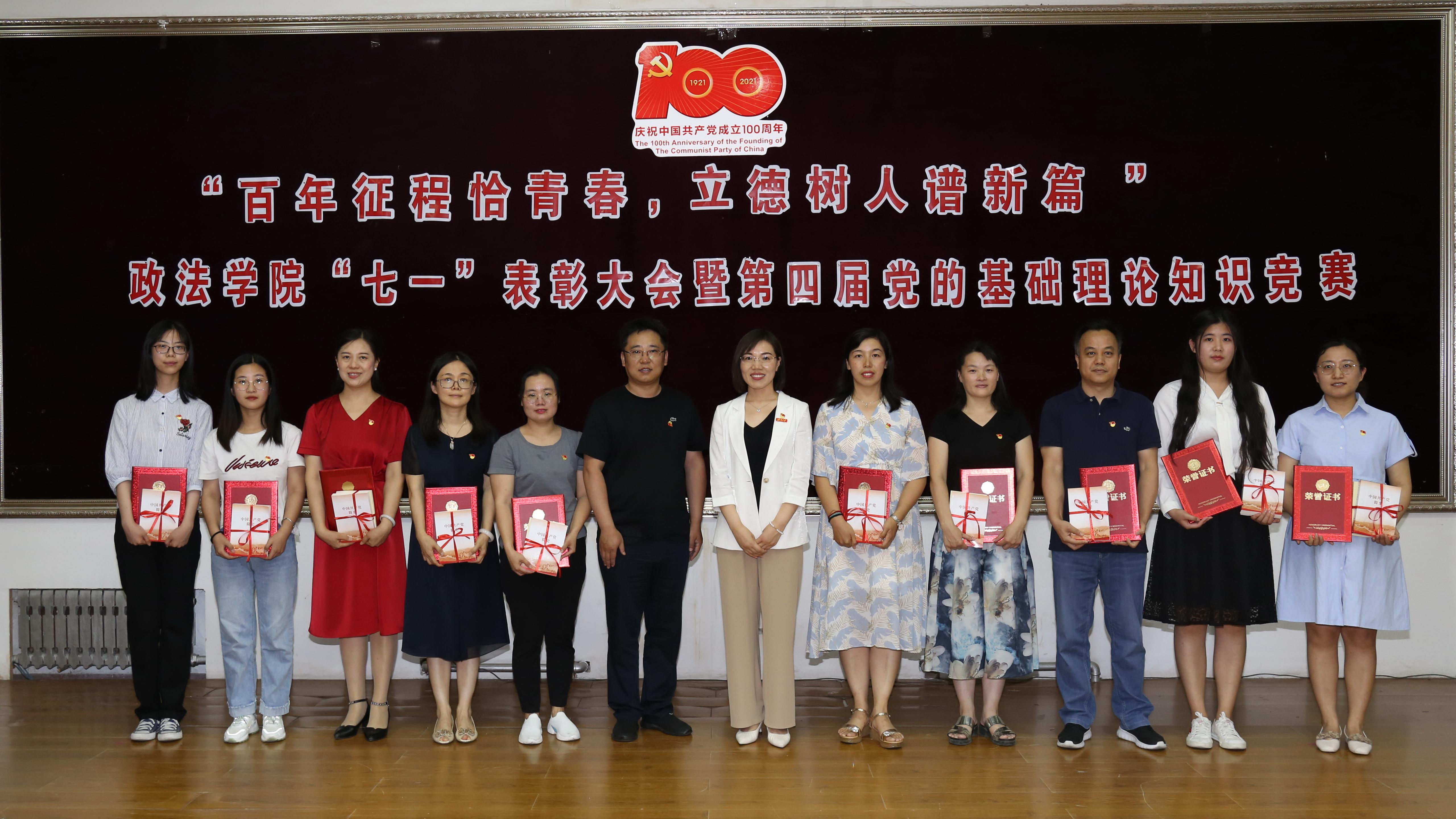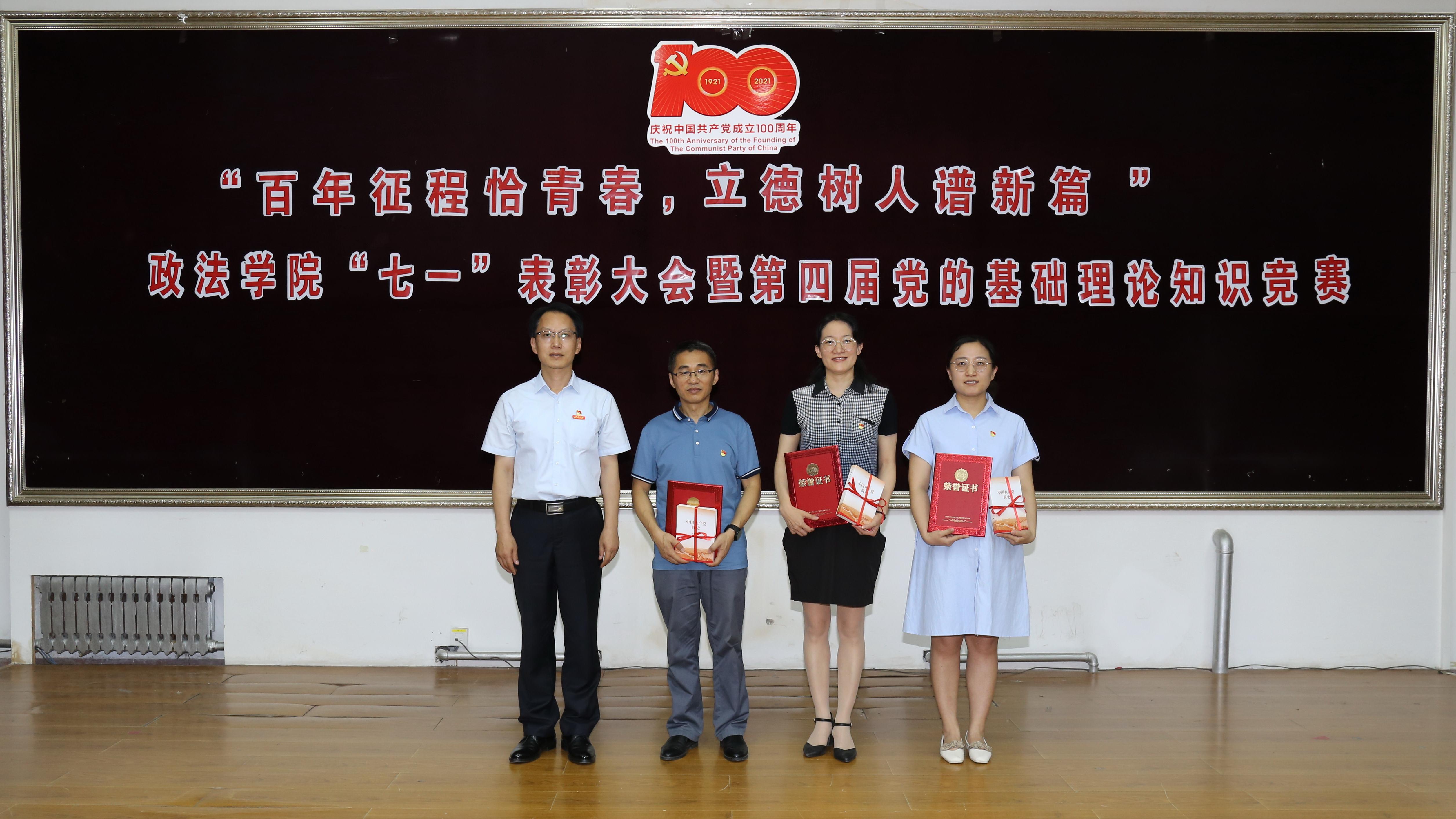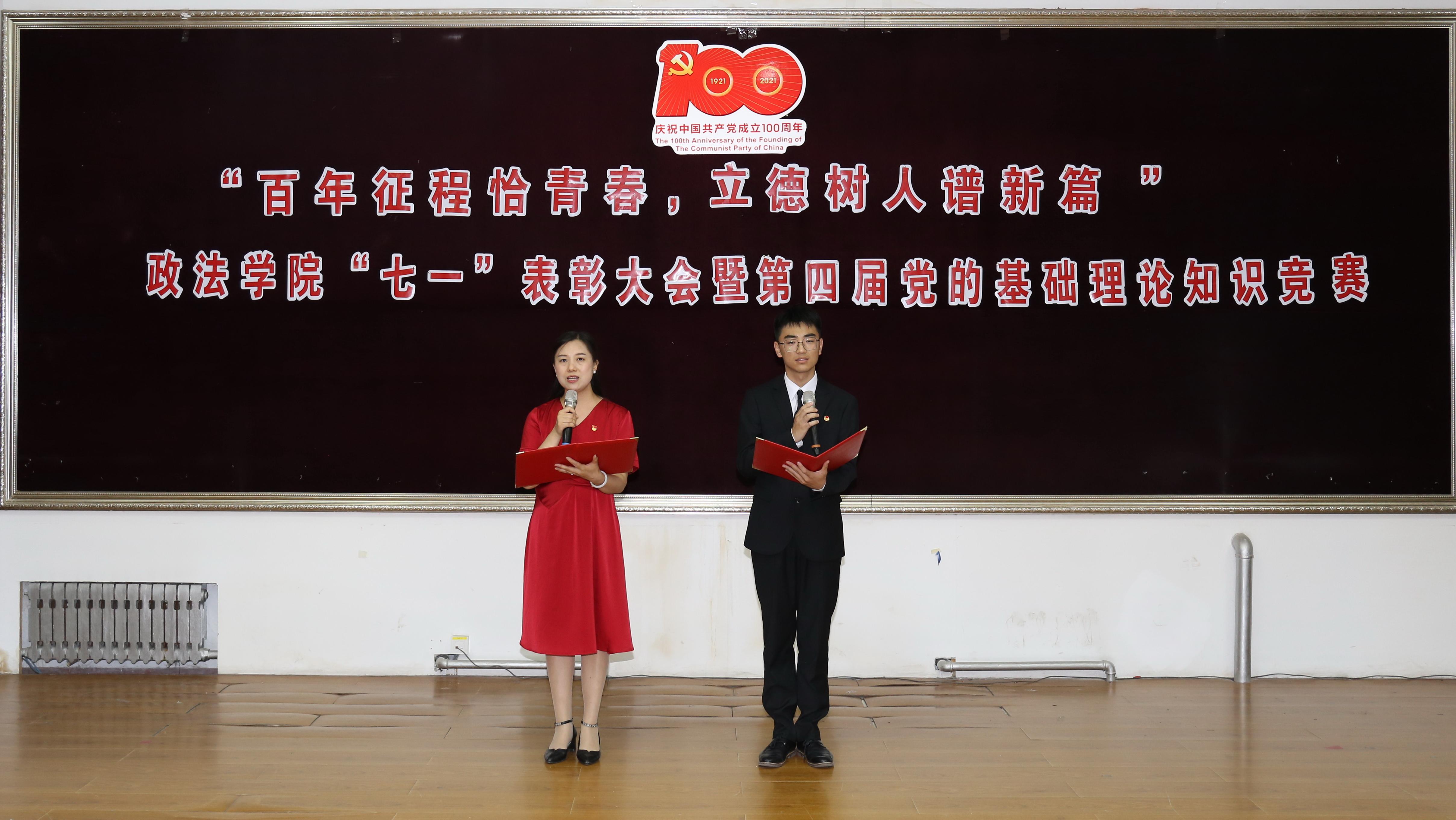 正处级组织员国迎春宣读表彰决定,授予王康等24名同志“优秀共产党员”荣誉称号,授予辛瑞萍等3名同志“优秀党支部书记”荣誉称号,授予政治学系党支部等3个党支部“先进党支部”荣誉称号。与会领导嘉宾为优秀个人和先进集体颁奖。教工党员代表任晓敏和学生入党积极分子代表骆凯霖以诗言志,深情朗诵《光荣与梦想》,表达对党的无限忠诚和热爱。