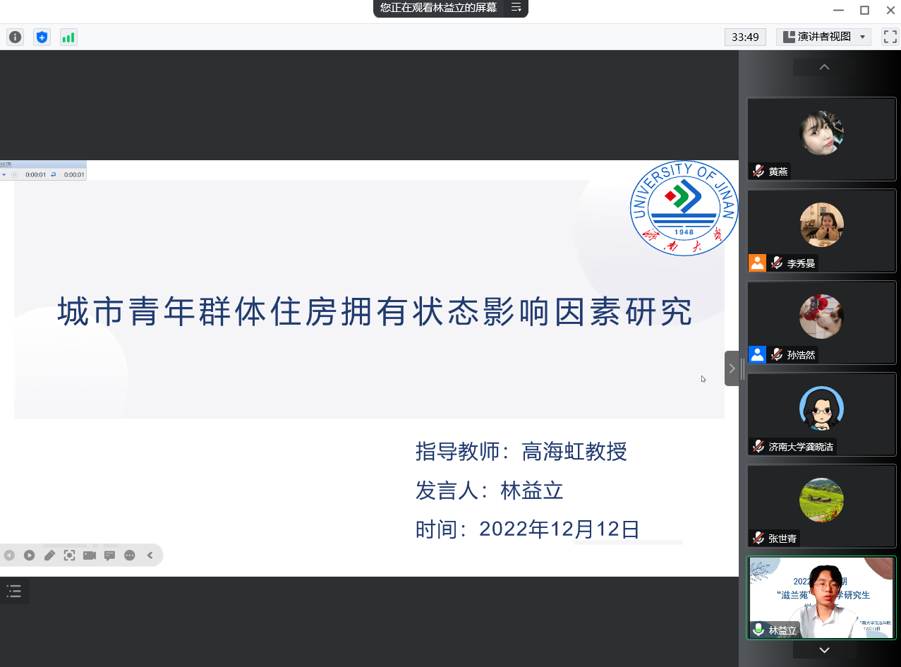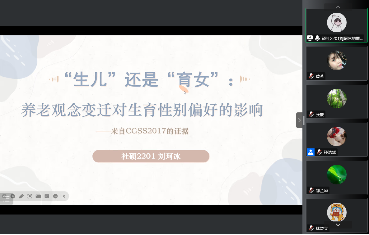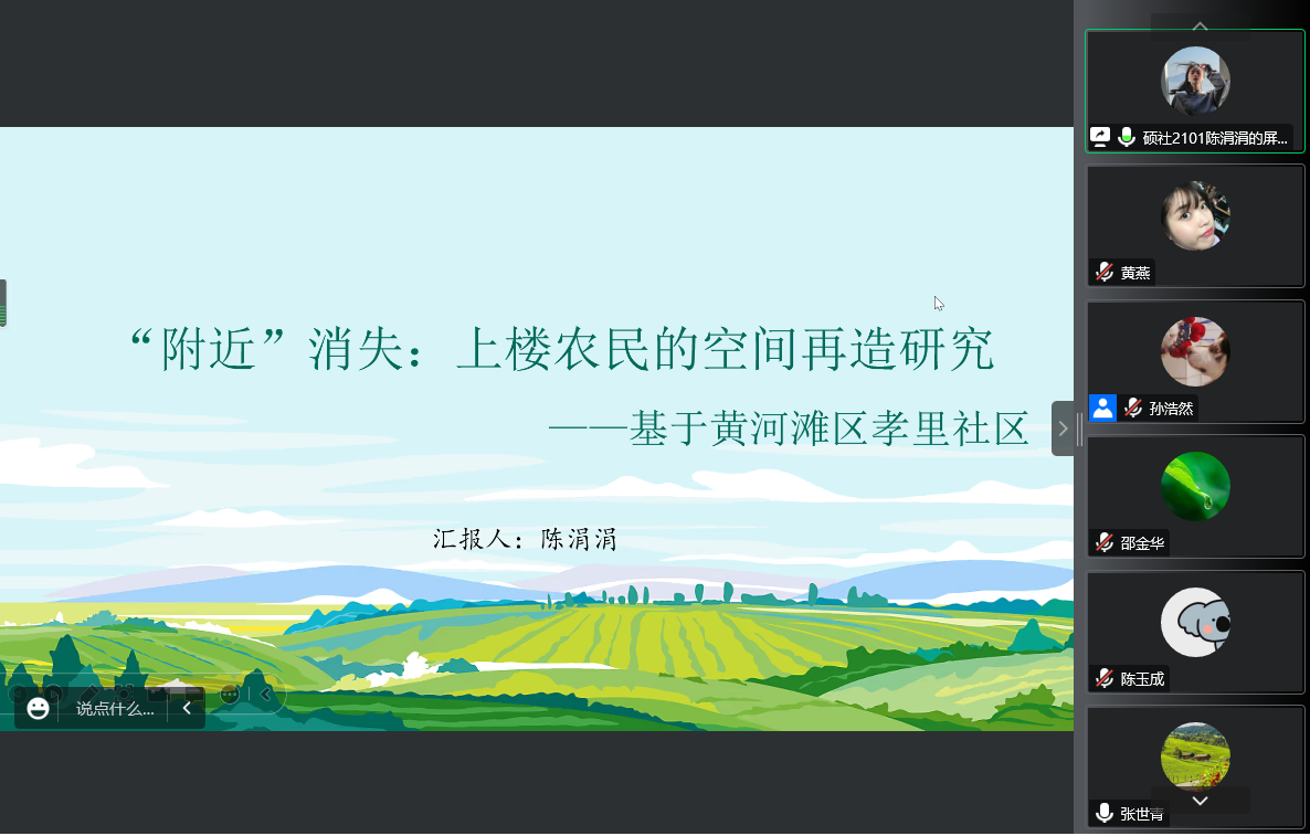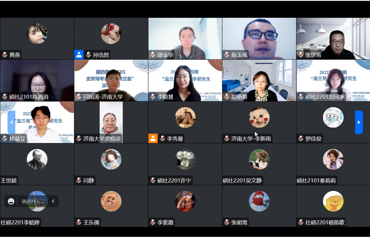 2022年第四期“滋兰苑”社会学研究生学术论坛在腾讯会议室成功举办。本次论坛邀请龚晓洁老师、邵金华老师、张银老师、胡艳蕾老师、张世青老师和陈玉成老师担任点评嘉宾,全体社会学研究生参加,院研究生会竞赛部孙浩然同学担任主持。