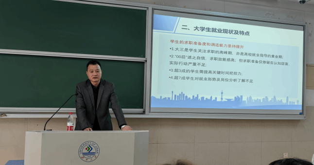 2024年两会政府工作报告中25次提及就业。报告指出,就业是最基本的民生,要突出就业优先导向,加强财税、金融等政策对稳就业的支持,加大促就业政策力度。为提高同学们的就业导向意识,3月22日上午,人力资源与社会保障系特邀济南市公共就业服务中心人力资源市场处副处长李允松莅临毛巾哥