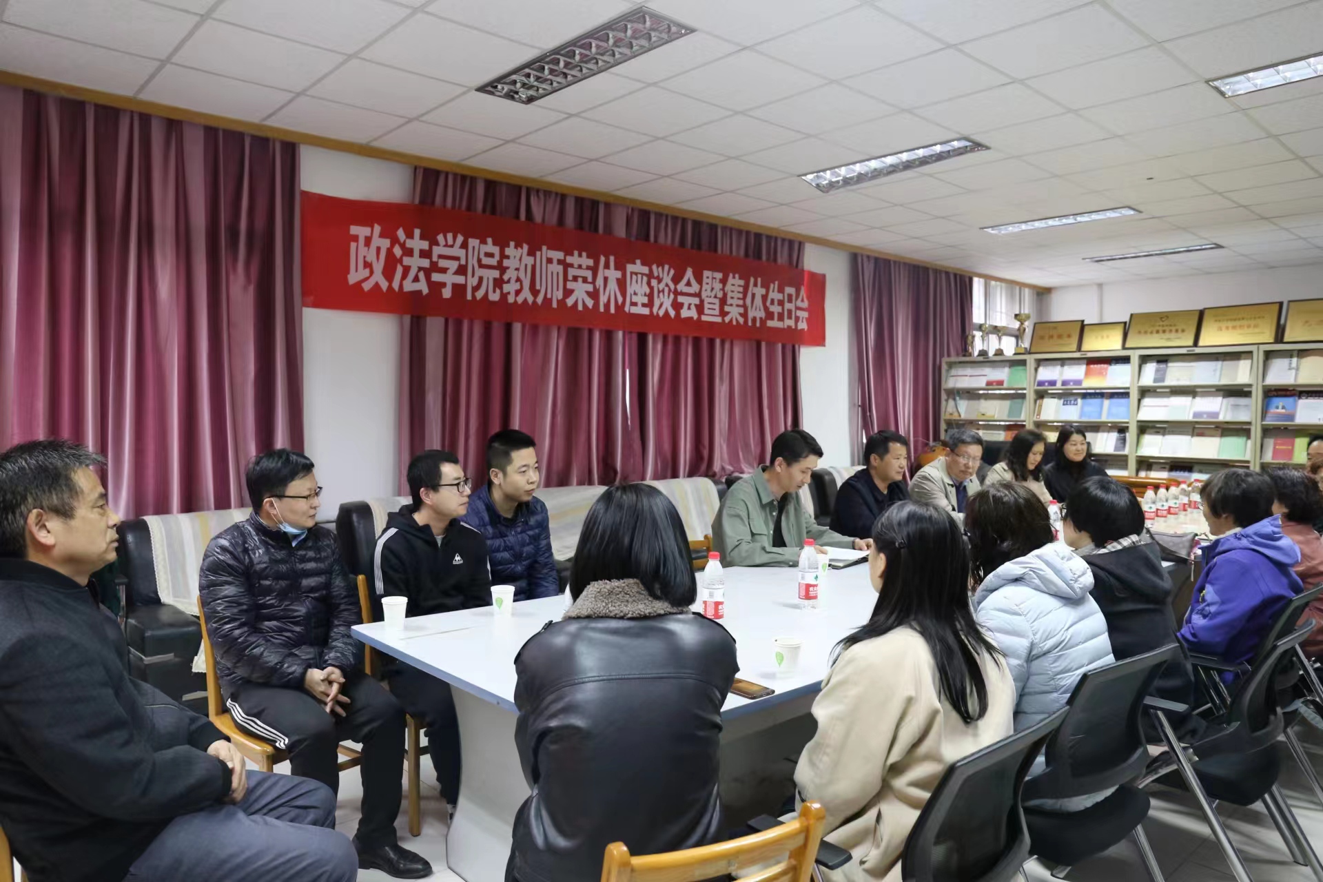 在三教219教师之家举办教师荣休座谈会暨集体生日会。学院领导班子、本月退休的教师、三四月过生日的教职工代表、青年教师代表、以及学生代表参加本次活动。活动由学院党委副书记、副院长李涛主持。