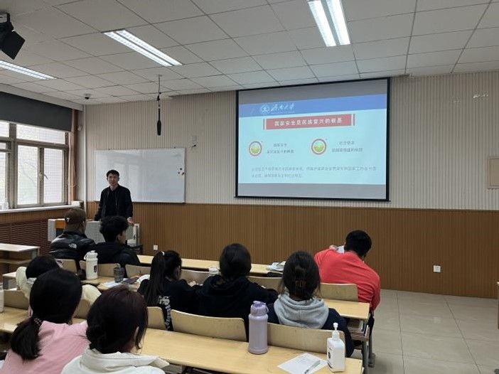 副书记、副院长李涛在十教116教室对预科2301班学生开展“激发思想共鸣 汇聚精神力量”主题讲座活动。