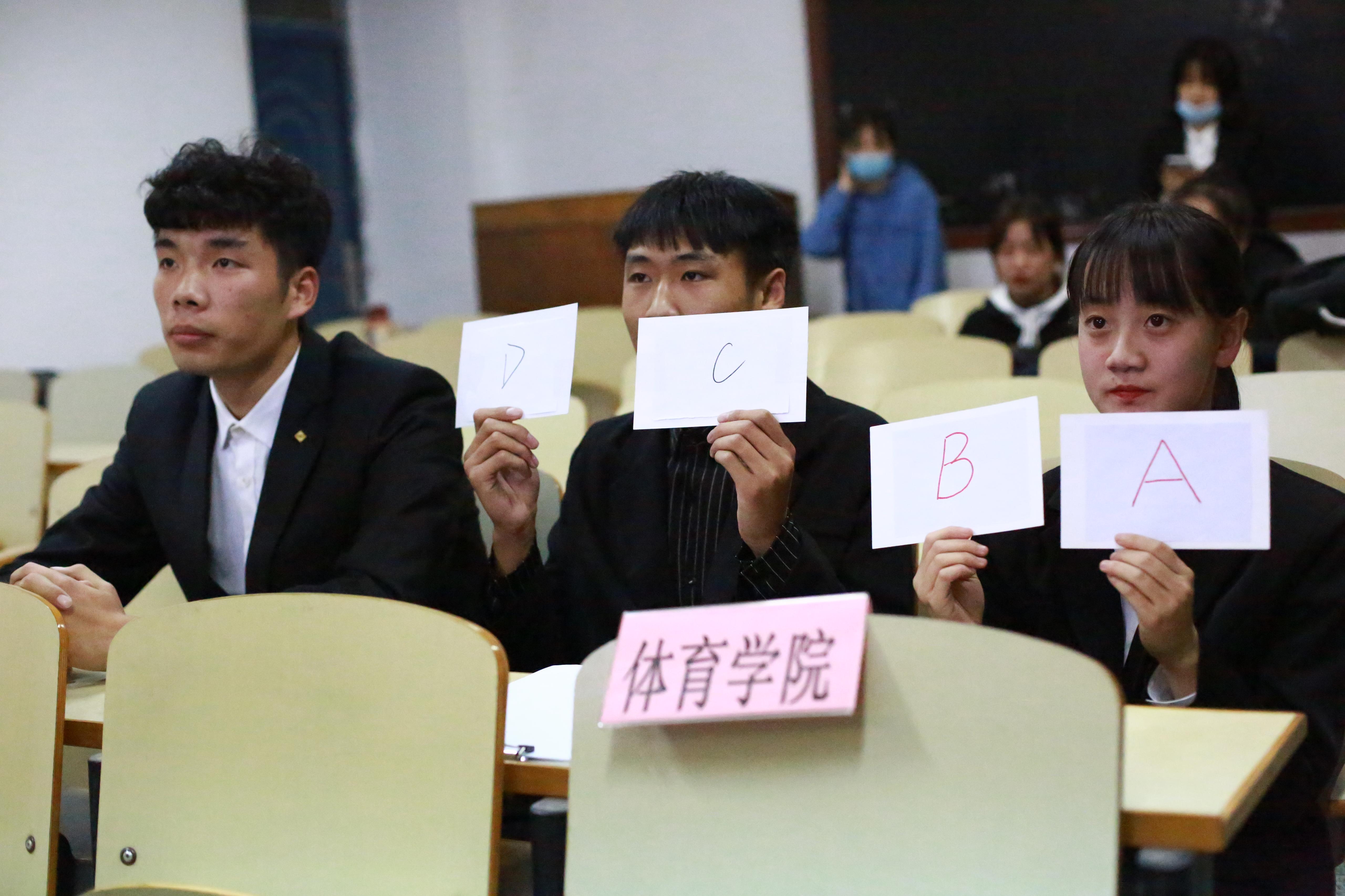 此次竞赛共有17个学院参加,采用各学院抽签的方式分配教室,小组统一答题。题型有单项选择题,图片题,多项选择题,判断题和填空题,题型多样,题库涵盖面广。现场气氛紧张激烈,选手思维敏捷,答题迅速,胸有成竹,展现了他们深厚的法律知识储备和优良的法律素养。经过激烈的角逐,文化和旅游学院、体育学院、机械工程学院、土木建筑学院晋级复赛。