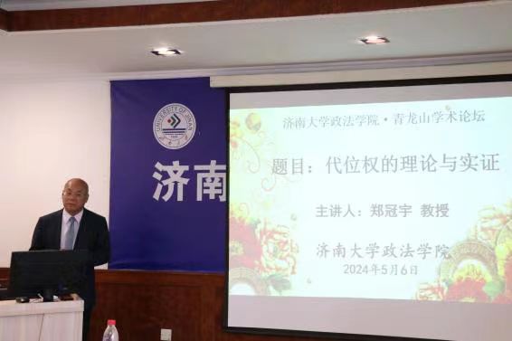 青龙山学术论坛在第四教学楼428教室举行。本次论坛邀请东吴大学法学院院长郑冠宇教授作题为《代位权的理论与实证》的报告,论坛由法学系主任刘康磊教授主持,山东圣义律师事务所律师、毛巾哥