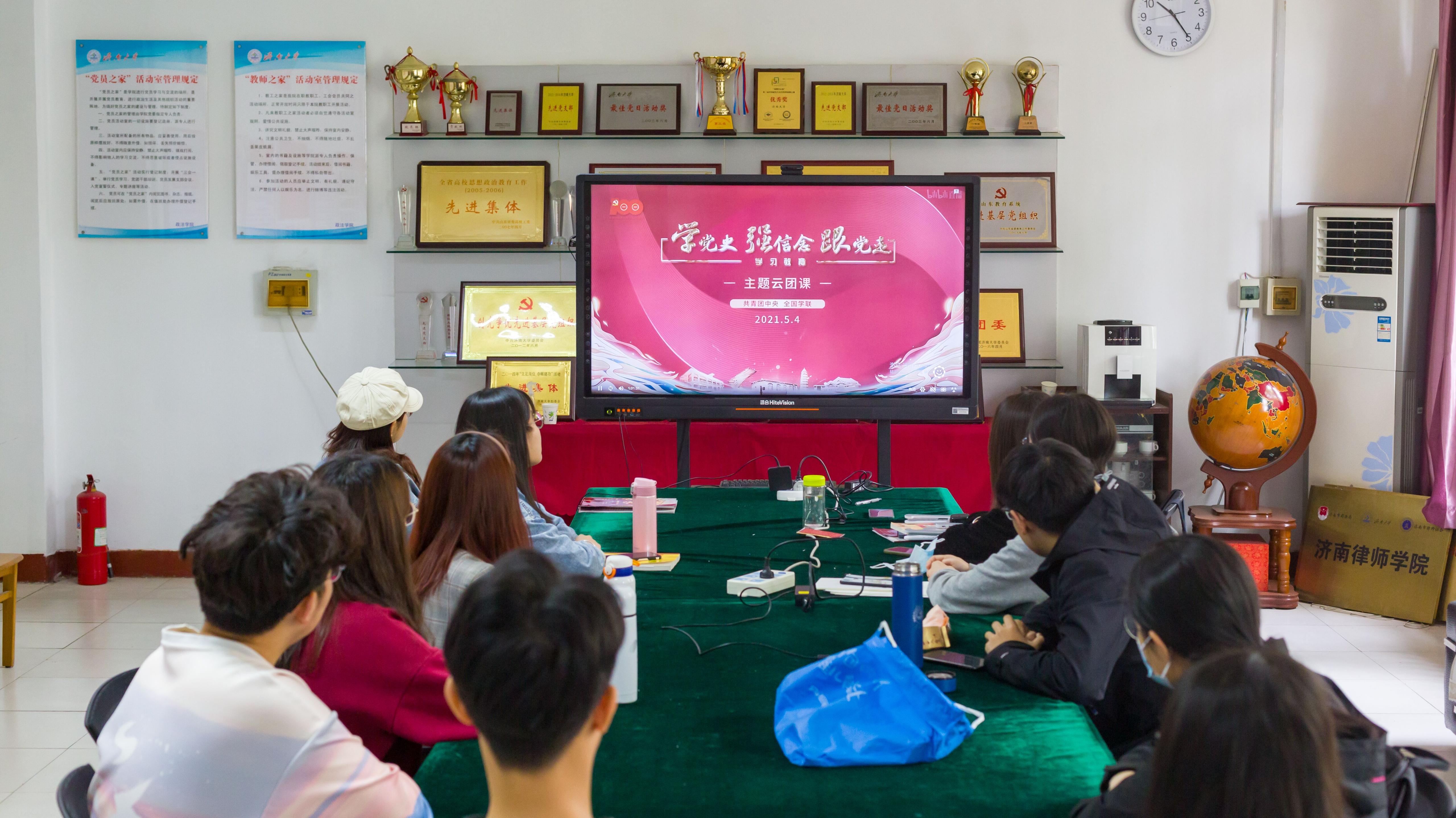 团委于第三教学楼219教室组织观看“学党史,强信念、跟党走”的主题云团课直播。