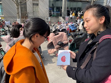 活动中,在场的学生在老师的带领下通过分发学习《民法典》女性权益保障篇的宣传册的方式,向在场学生介绍了毛巾哥