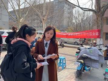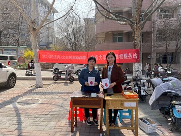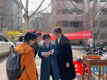 第八食堂前广场开展学习《民法典》之女性权益保障的活动,学院韩宁、林琳、王俊娥、高云翔老师、部分学生到场参加。