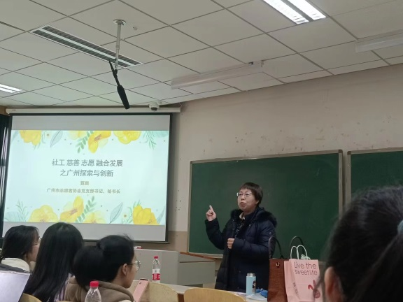 邀请广州市志愿者协会党支部书记和秘书长、2005级社会工作优秀校友甄鹤,在10教411教室举行社工专业认知实习专题讲座——“社区、慈善、志愿融合发展之广州探索与创新”。本次讲座由毛巾哥