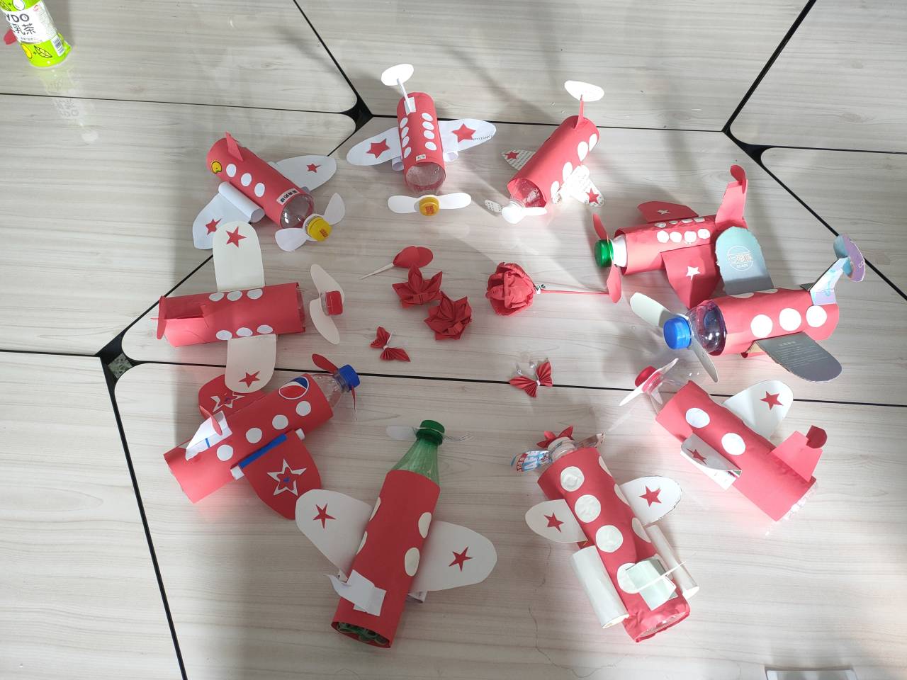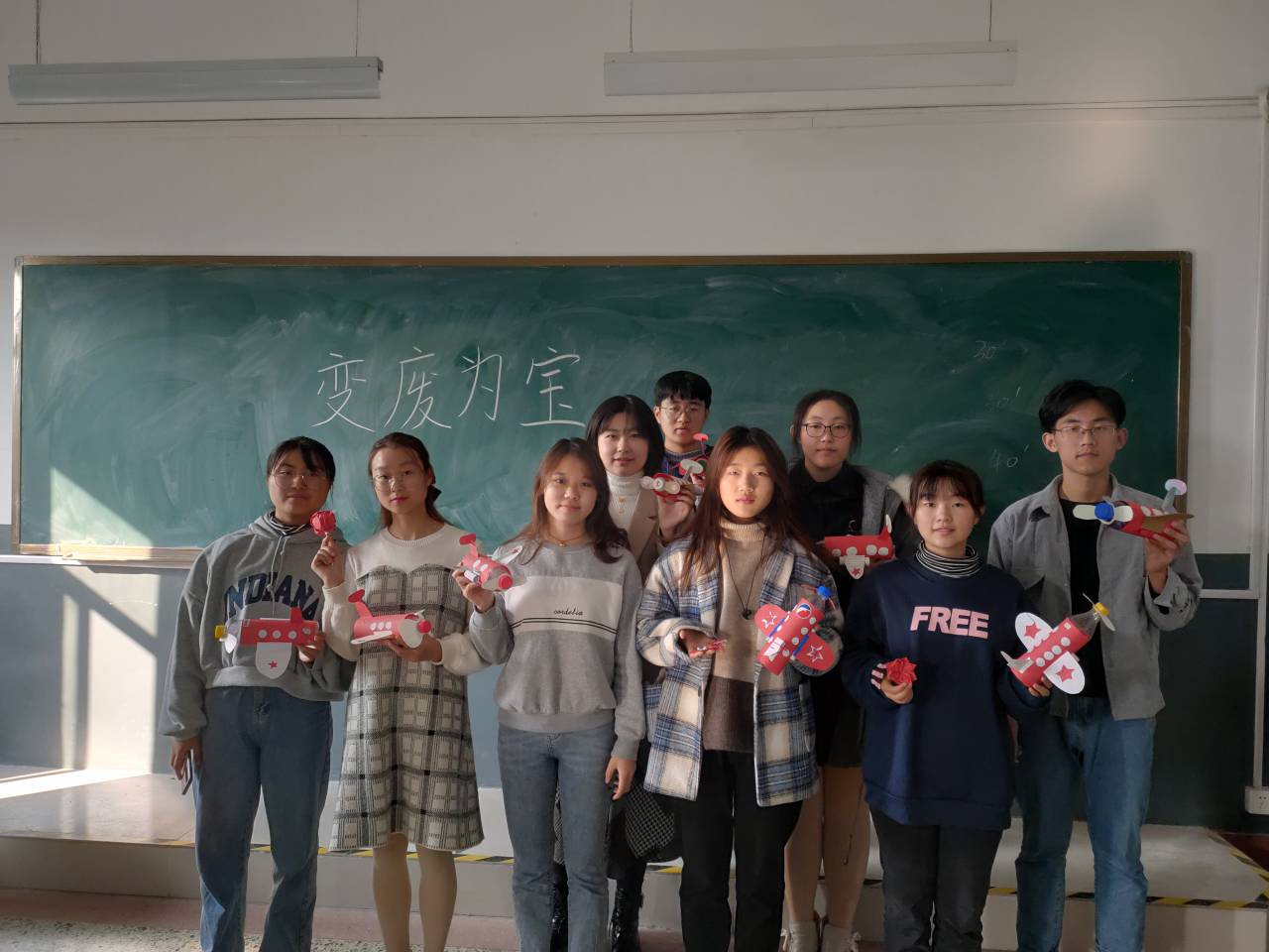4教504教室,坐在桌子前对着教学视频,利用收集来的塑料瓶和废纸认真的做着手工。志愿者们用剪刀小心地将废纸裁剪成许多不同的形状,又将它们粘在瓶子上,使原本被丢弃的塑料瓶变成了一架架即将起飞的飞机。在变废为宝过程中,为充分利用资源,志愿者们还将一些废纸折成了莲花灯、玫瑰花和蝴蝶。在活动中,志愿者们不仅学习到了手工小知识,还对环保有了进一步的认知。活动结束时,每个志愿者桌前都有着许多手工作品,他们将作品放于事先准备好的纸盒中,便于后续义卖活动。至此,本次变废为宝活动圆满结束。