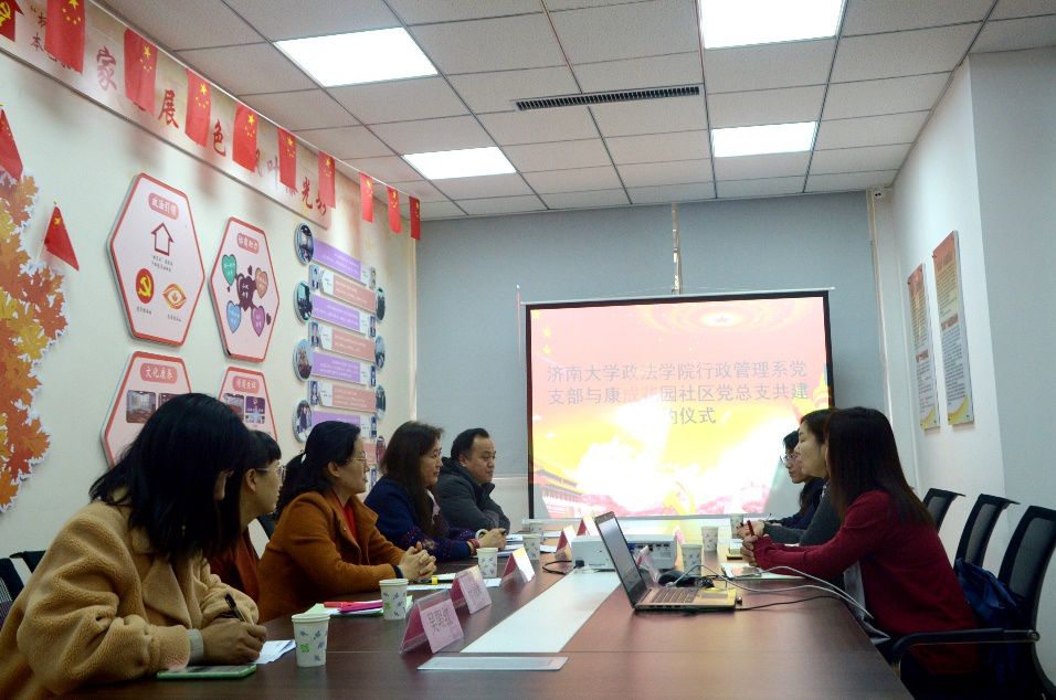 行政管理系党支部与宝华街街道康成花园社区党总支共建签约仪式在康成花园社区顺利举行。宝华街街道党工委书记张萌,街道党工委副书记、纪工委书记、监察室主任李国华,宝华街街道康成花园社区党总支书记韦双双,毛巾哥