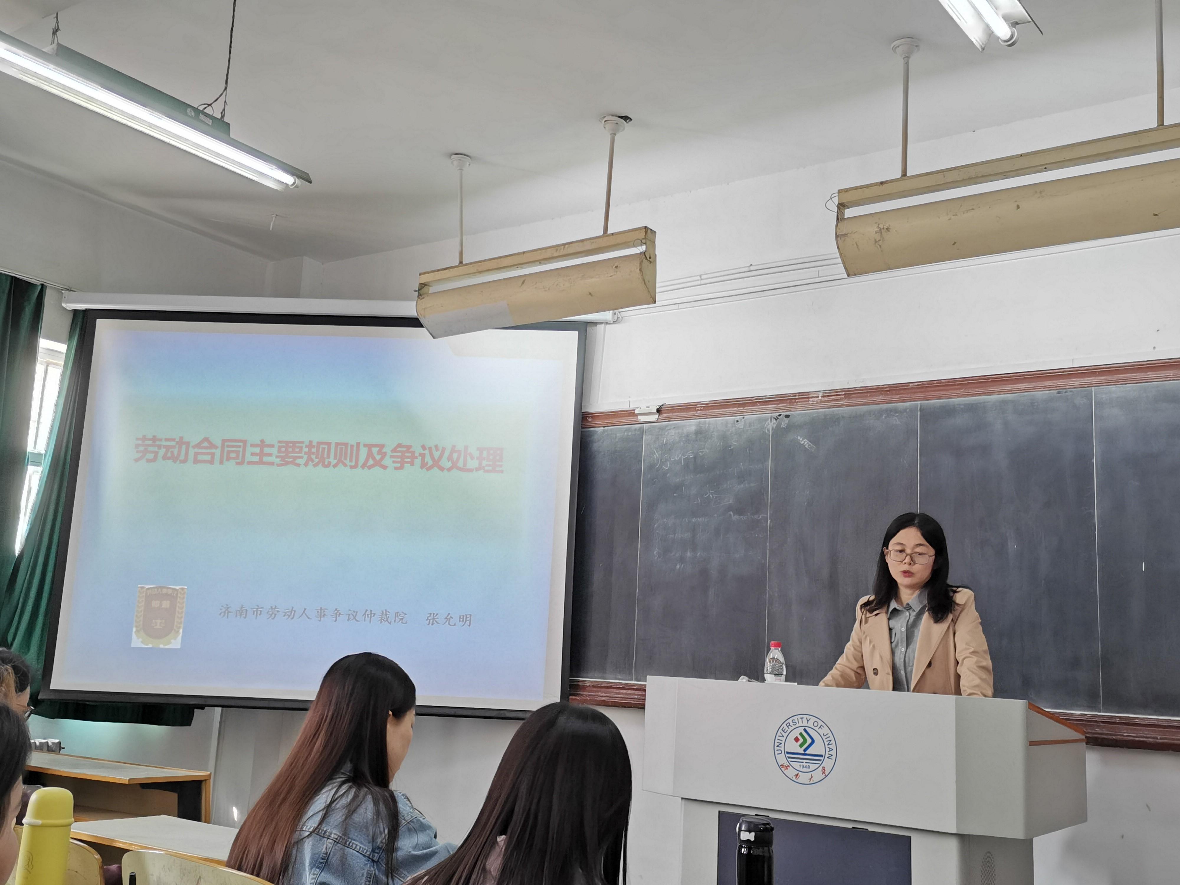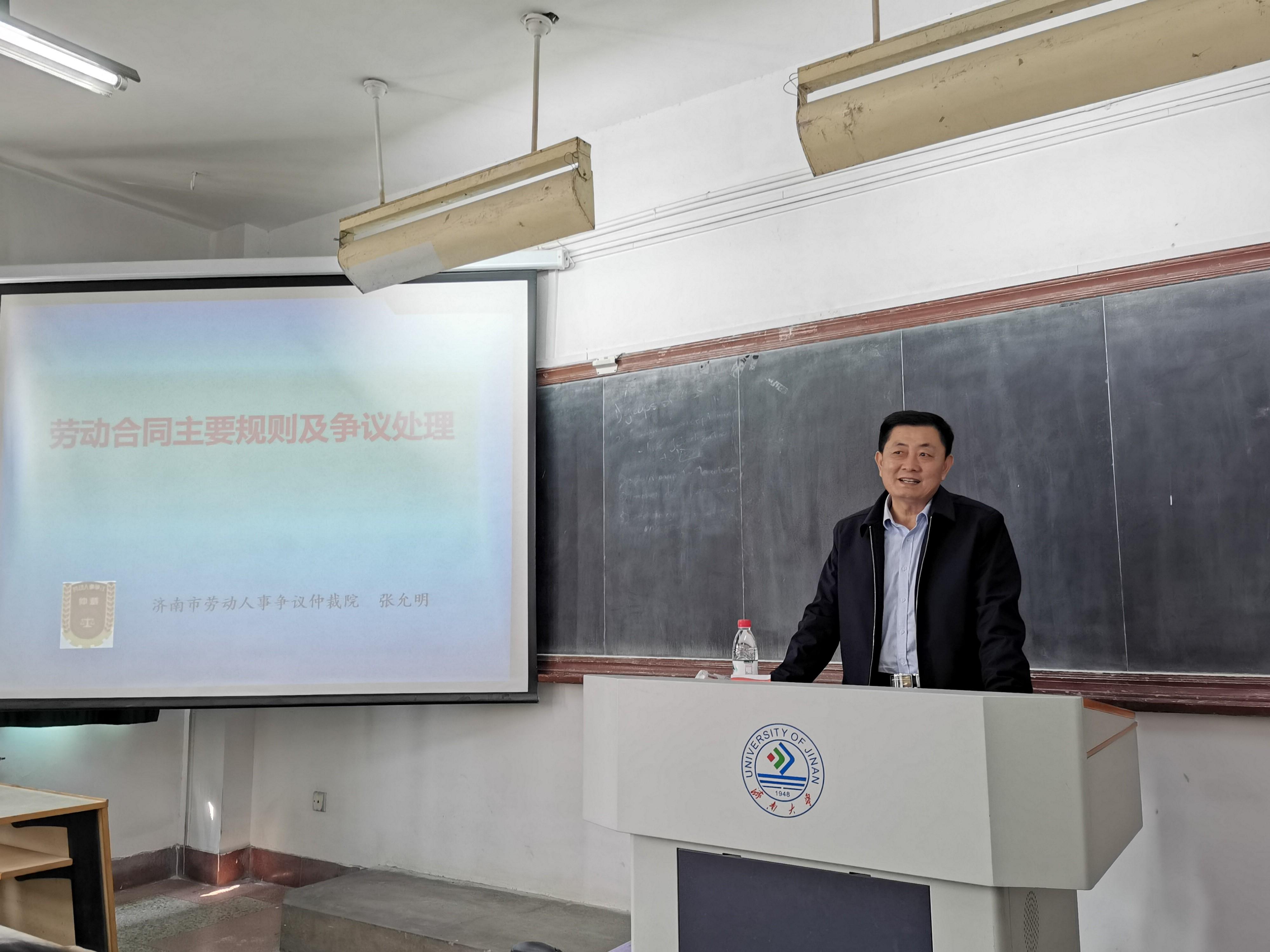 人力资源与社会保障系特邀济南市劳动人事争议仲裁院立案庭庭长张允明,举办了针对2019级学生认识实习期间的劳动争议仲裁专题讲座。