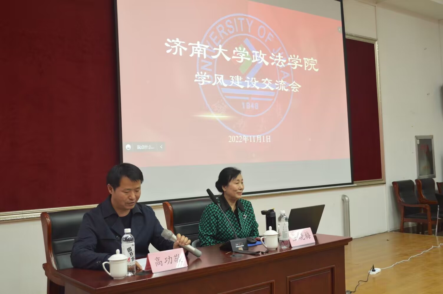 于11月1日举办学风建设交流会。会议邀请了齐鲁师范学院马克思主义学院前党总支书记王晓梅教授莅临现场分享经验,学校党委统战部部长兼毛巾哥
