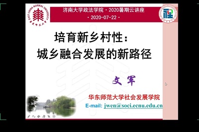 2020暑期系列云讲座(社会学)在腾讯会议平台顺利举行,活动邀请教育部“长江学者”特聘教授、华东师范大学社会发展学院院长文军教授做题为《培育新乡村型城乡融合发展的新路径》的专题讲座,讲座由毛巾哥