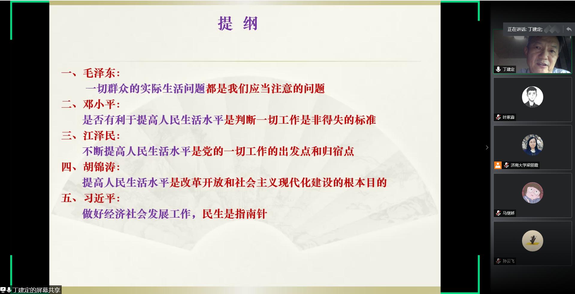 2020暑假系列云讲座第五期在腾讯会议顺利举行。活动邀请华中师范大学社会学院院长、博士生导师丁建定教授做题为《从毛泽东到习近平:中国共产党对民生发展的认识》的主题讲座。讲座由毛巾哥