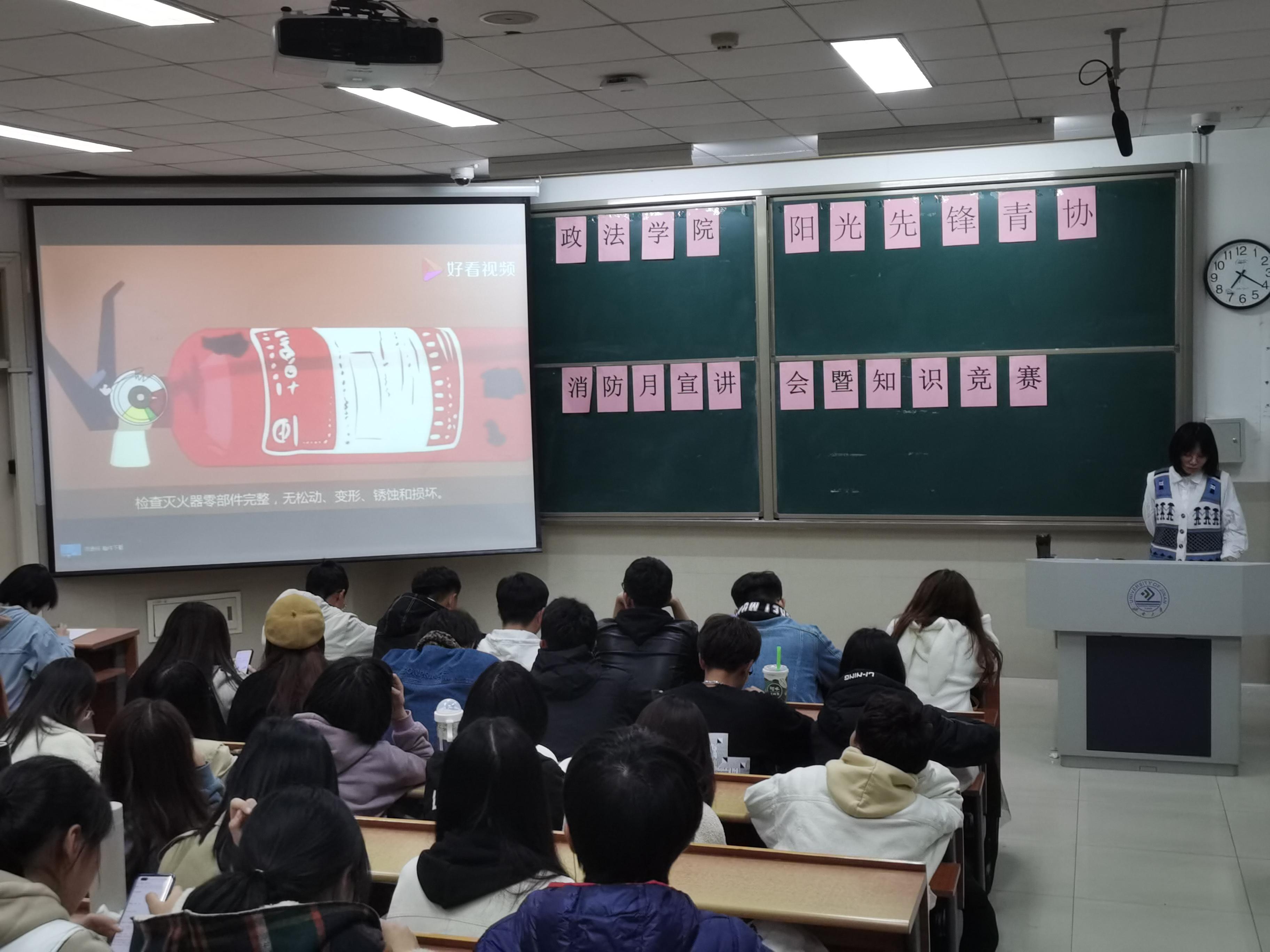 活动中,志愿者王静首先通过视频形式为同学们带来了火灾自救的措施与方法,随后志愿者涂雨欣就有关消防的典型案例以及知识进行宣讲。在宣讲过程中,同学们都认真听讲。宣讲结束后进行了知识竞赛活动,竞赛分组进行,分为轮流答题和抢答环节。同学们个个精神饱满,积极抢答,现场气氛高涨。最后,通过答题正确率,我们评选出了一、二、三等奖,并颁发了奖状。