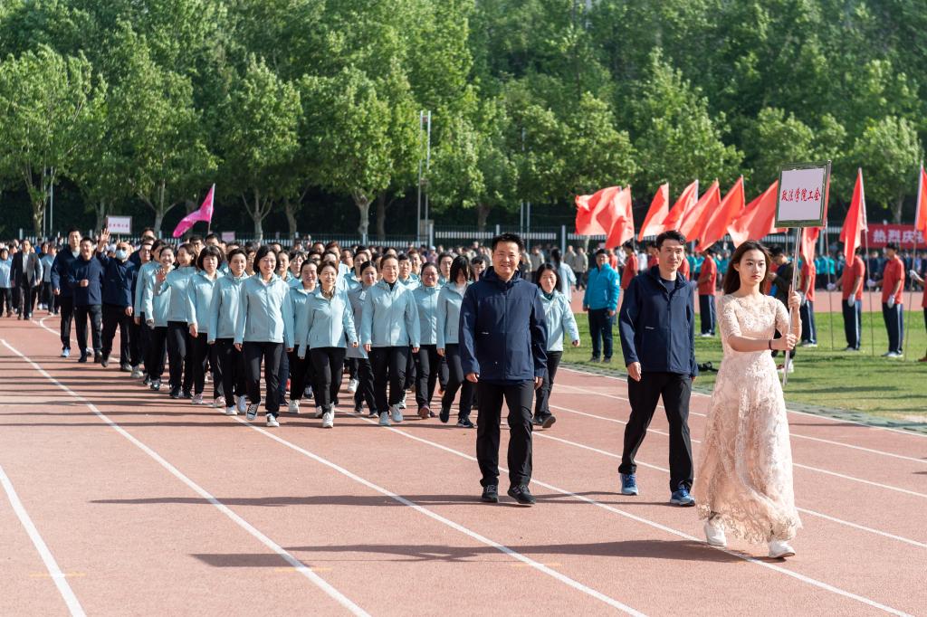 教职工和学生代表参加本次春季田径运动会。