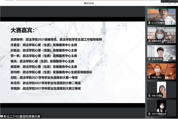 心理(生涯)发展服务中心于2022年5月8日14:00在腾讯会议以线上直播的形式组织了本次学院职业生涯规划大赛并取得了圆满结束。
