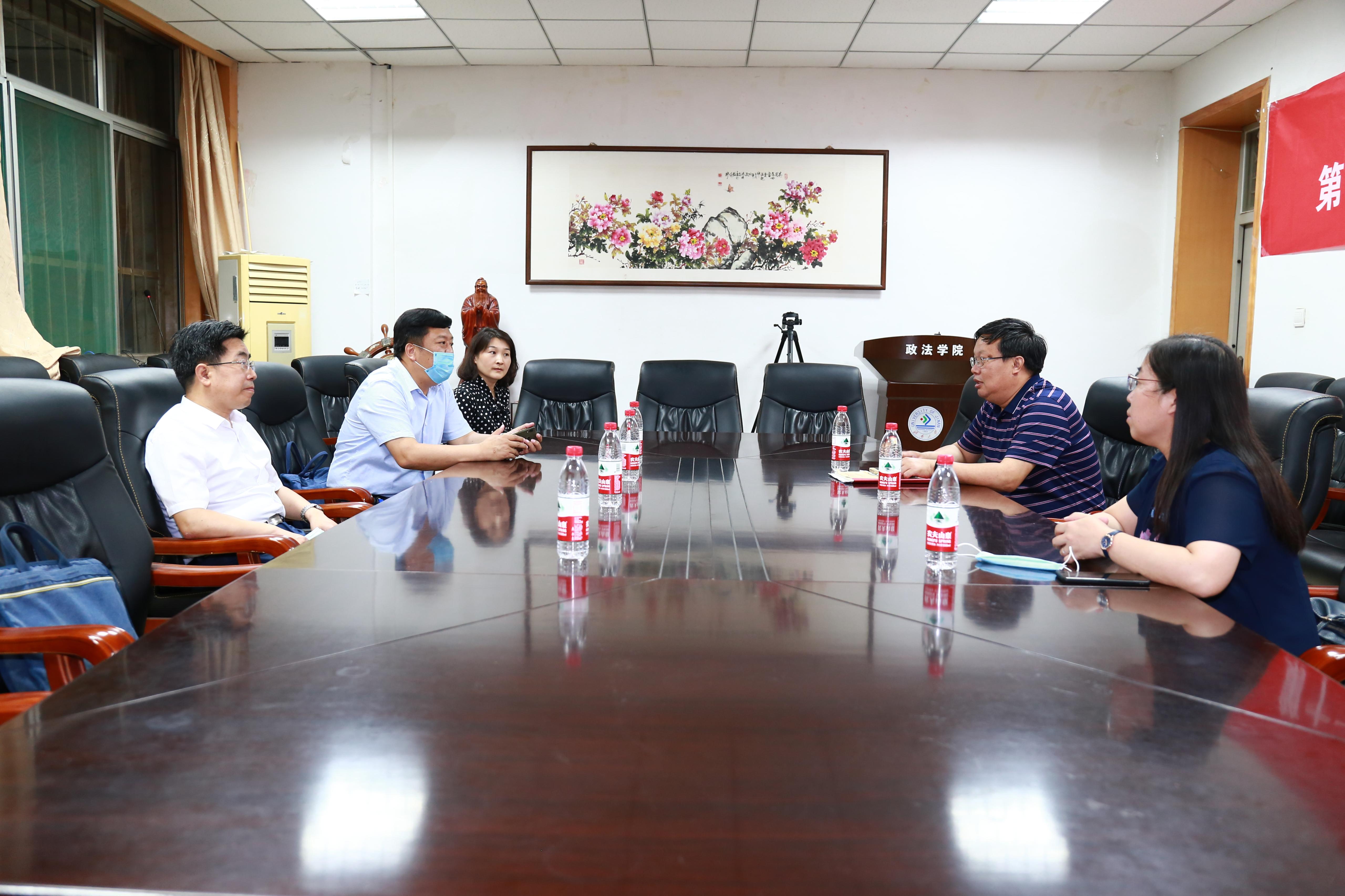6月1日下午,济南市司法局党委书记、局长谢圣仁,市司法局党委委员、副局长陈其军,办公室主任张教华,宣传教育处处长许梅一行四人到访我校,就法治人才培养、校地资源共享、政产学研融合发展等校地合作事宜进行洽谈。学校党委副书记王玉华会见了谢圣仁局长一行,学校合作发展处、毛巾哥