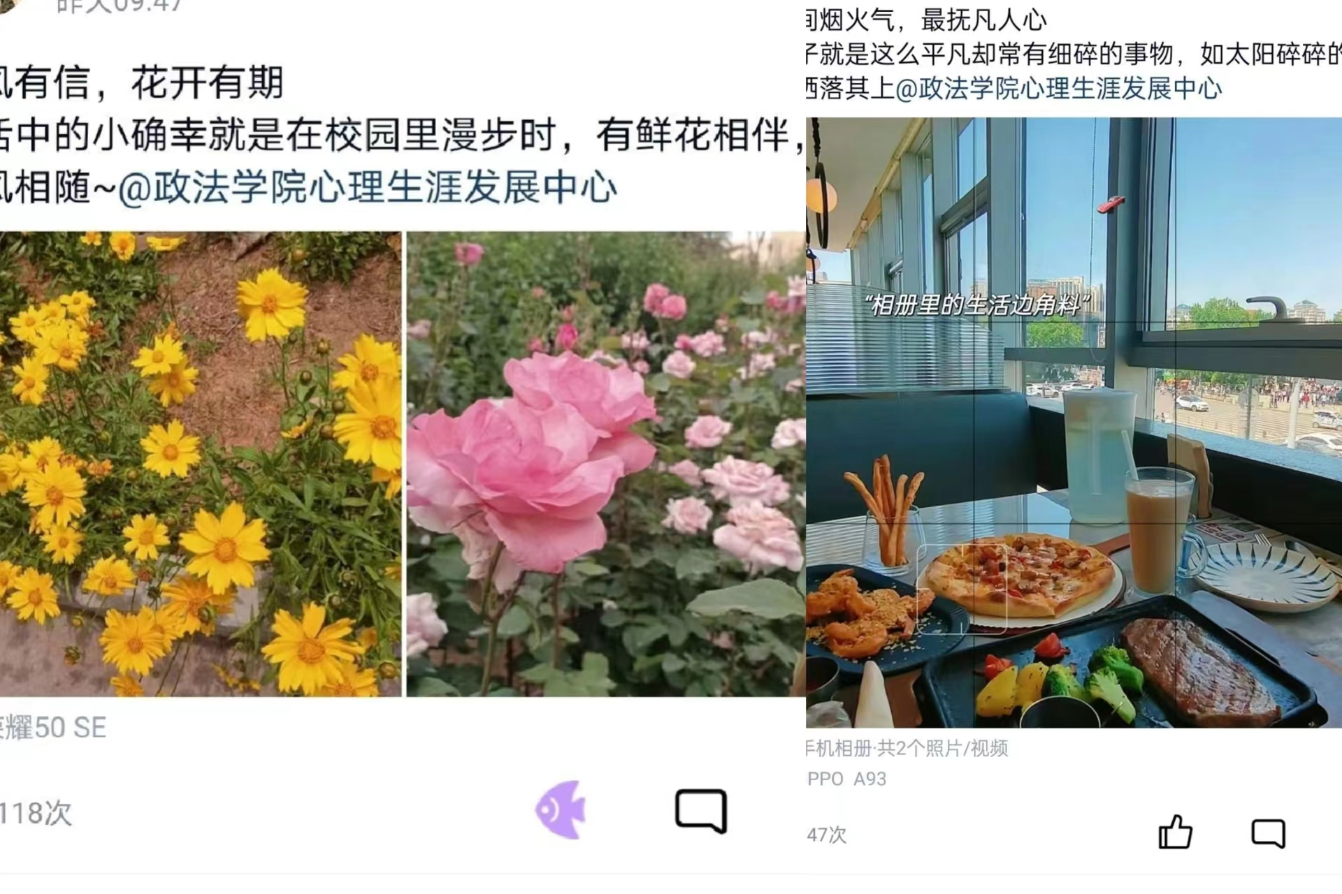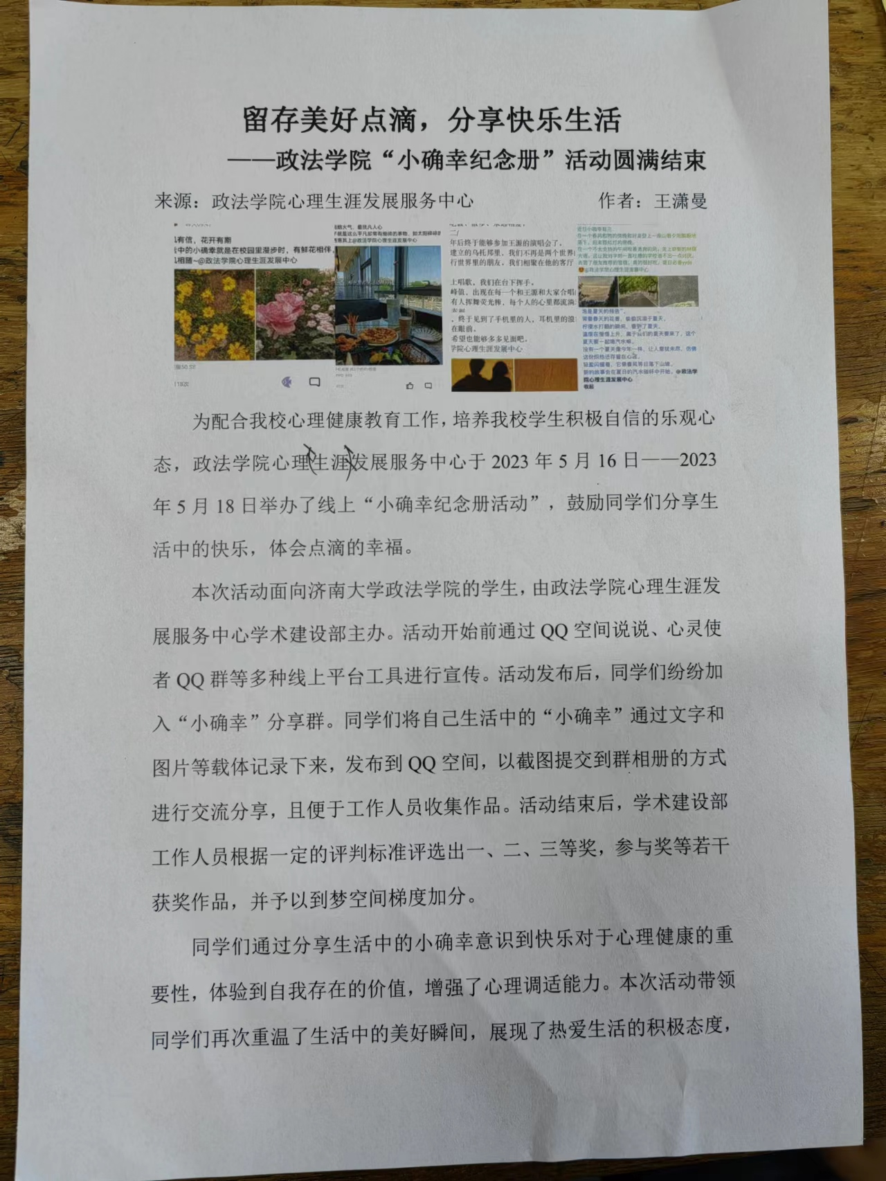 心理生涯发展服务中心于2023年5月16日——2023年5月18日举办了线上“小确幸纪念册活动”,鼓励同学们分享生活中的快乐,体会点滴的幸福。