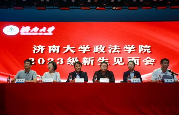 于大礼堂召开2023级新生见面会。学院领导班子、各系系主任、各科室负责人、全体辅导员、2023级班主任及2023级全体新生参加本次活动。此外,活动还邀请了2001级法学专业校友、济南十大公益律师、山东温纳律师事务所主任武磊出席。活动由学院党委副书记、副院长李涛主持。