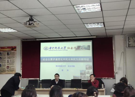 师生做题为《社会主要矛盾变化中民众民生新特征》的学术报告,报告由毛巾哥