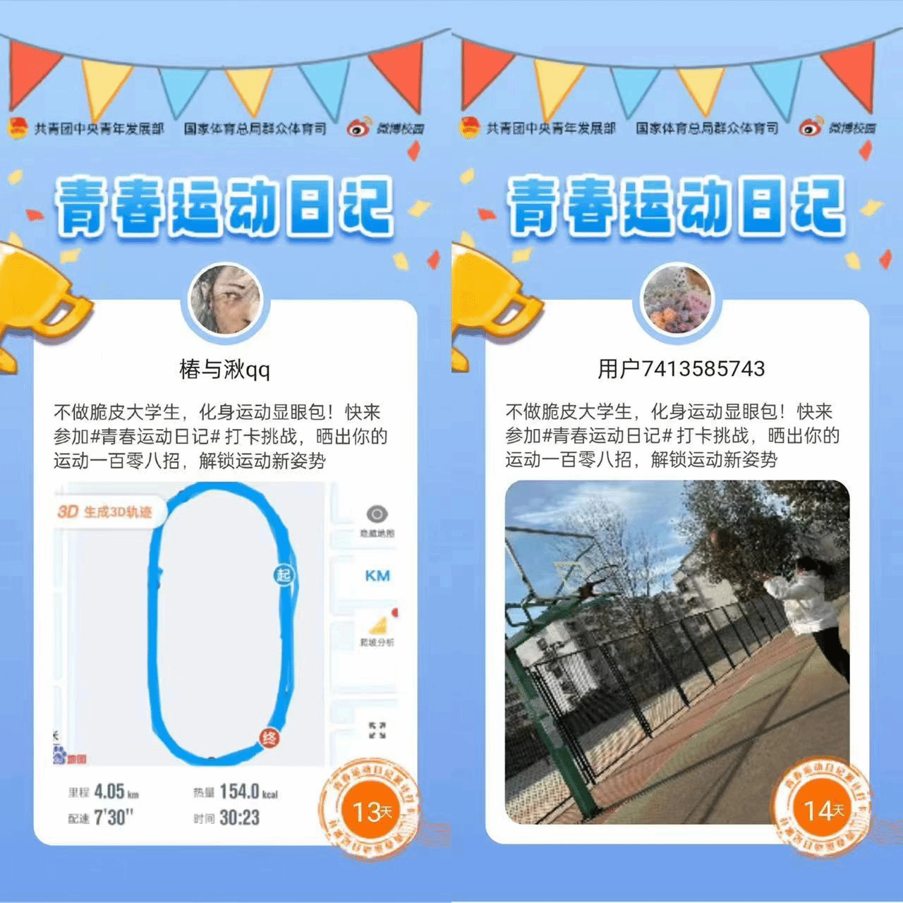 积极响应学校号召,开展了为期20天的“青春爱运动,健康强中国”——2023年“青春运动日记”大学生团员常态化运动打卡系列活动。