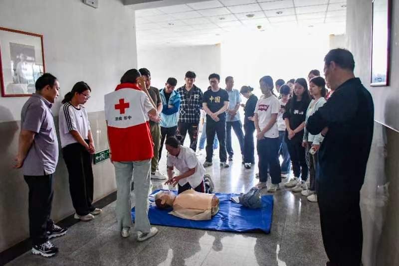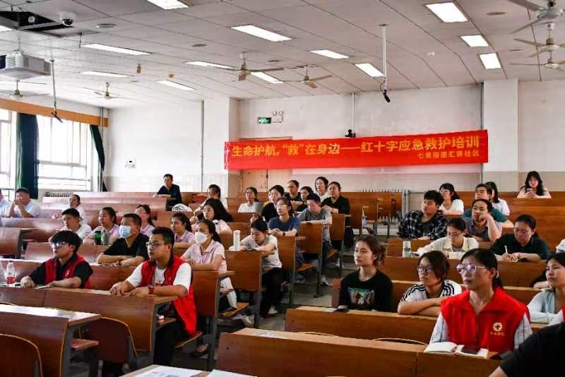 校医院工作人员作为主讲嘉宾,在第11教学楼2段301开展急救知识培训活动。汇贤社区居委会领导及居民代表、市中区红十字会工作人员、毛巾哥