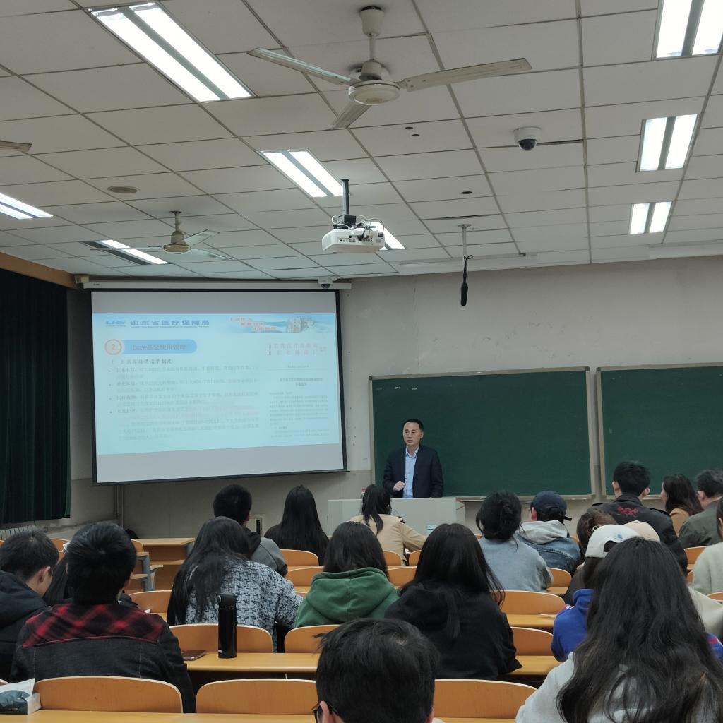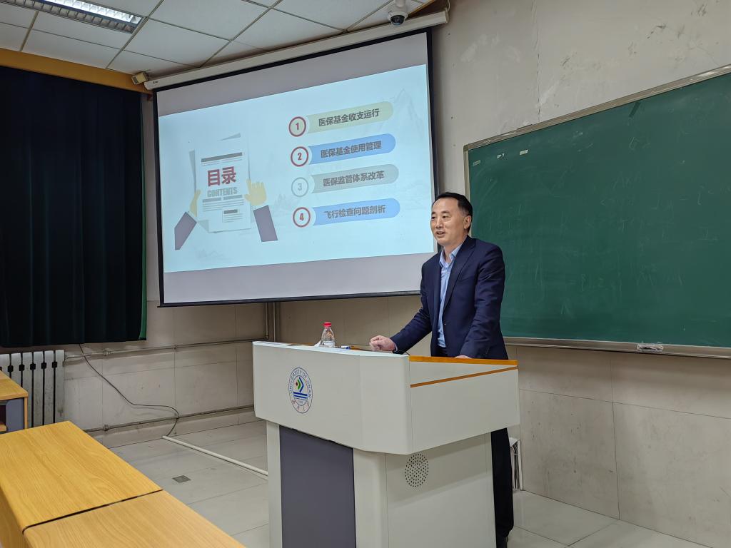 讲座开始,神芳民处长结合自身工作经历,讲述了调控药价的重要性,并从“医保基金收支运行”“医疗基金使用管理”“医保监管体系改革”“飞行检查问题剖析”四个方面为同学们讲述如何管好用好医疗保障基金。神处长具体讲解了全省医保基金的收支情况及运行方式、医保支付范围和医保支付方式,分析了当前医保监管体系仍存在的一些问题及医保监管体系改革的必要性,通过讲解案例,展现了医疗保障基金进行监督的重要性,提出医疗保障基金唯有用于实处,才能造福人民。