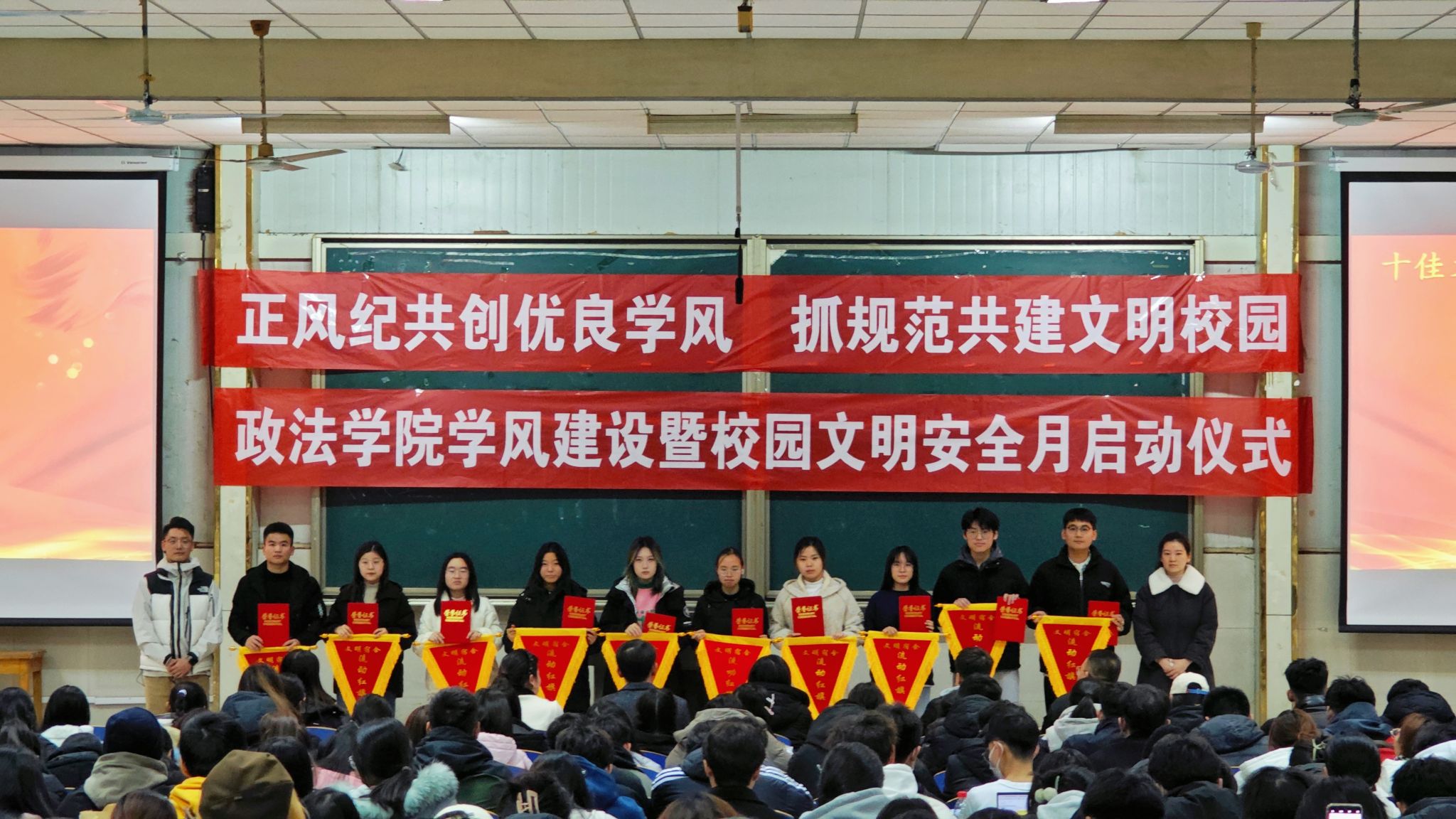 学院学生工作办公室主任黄茜老师详细介绍了此次学风建设月活动方案,强调了校园安全对于学生健康成长的重要性,希望同学们养成严谨的治学作风、实事求是的科学态度,严格遵守学习纪律,注重自身健康成长,强化安全意识。仪式还对“优良学风班级”“十佳文明宿舍”进行了表彰奖励。