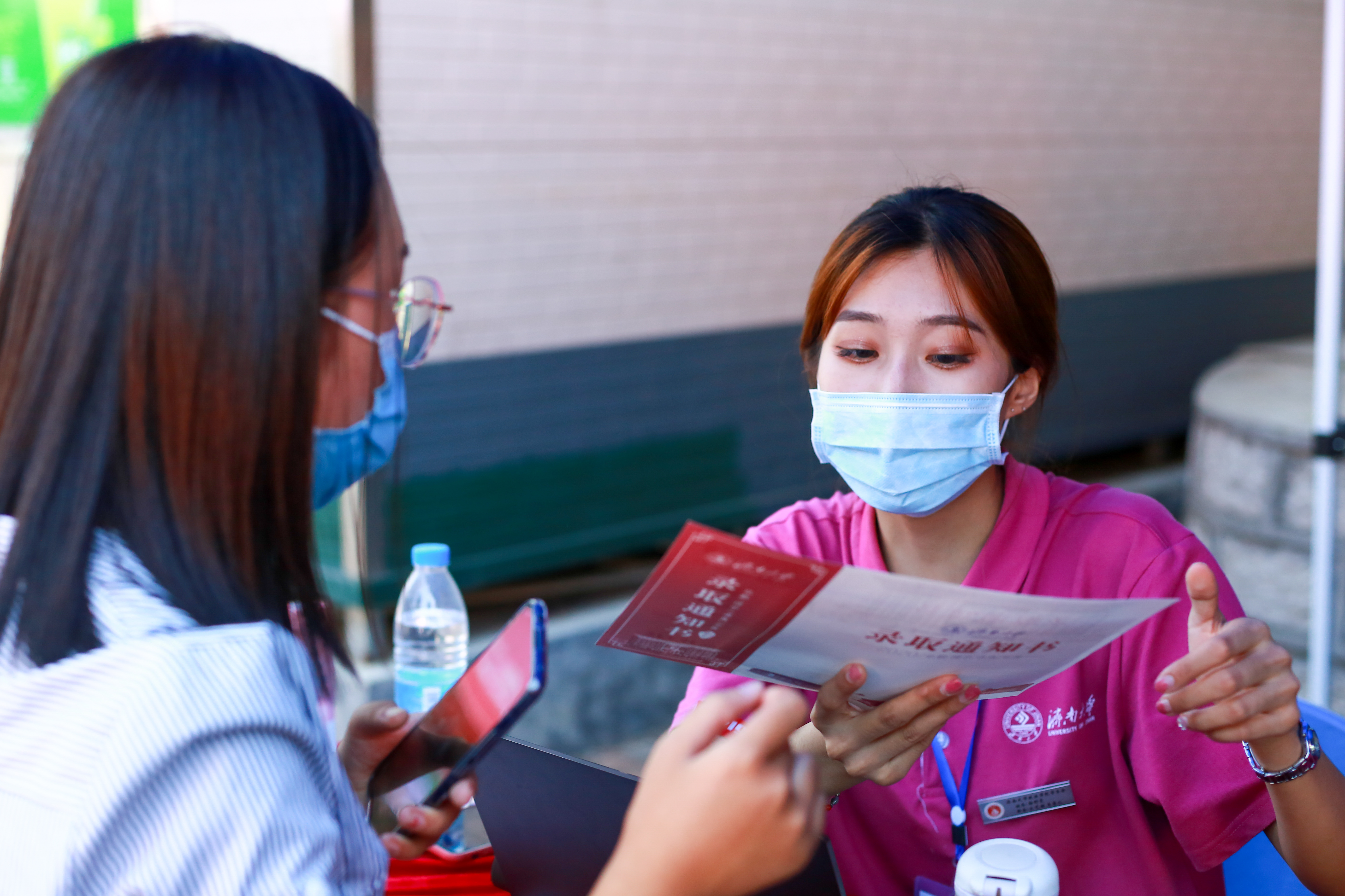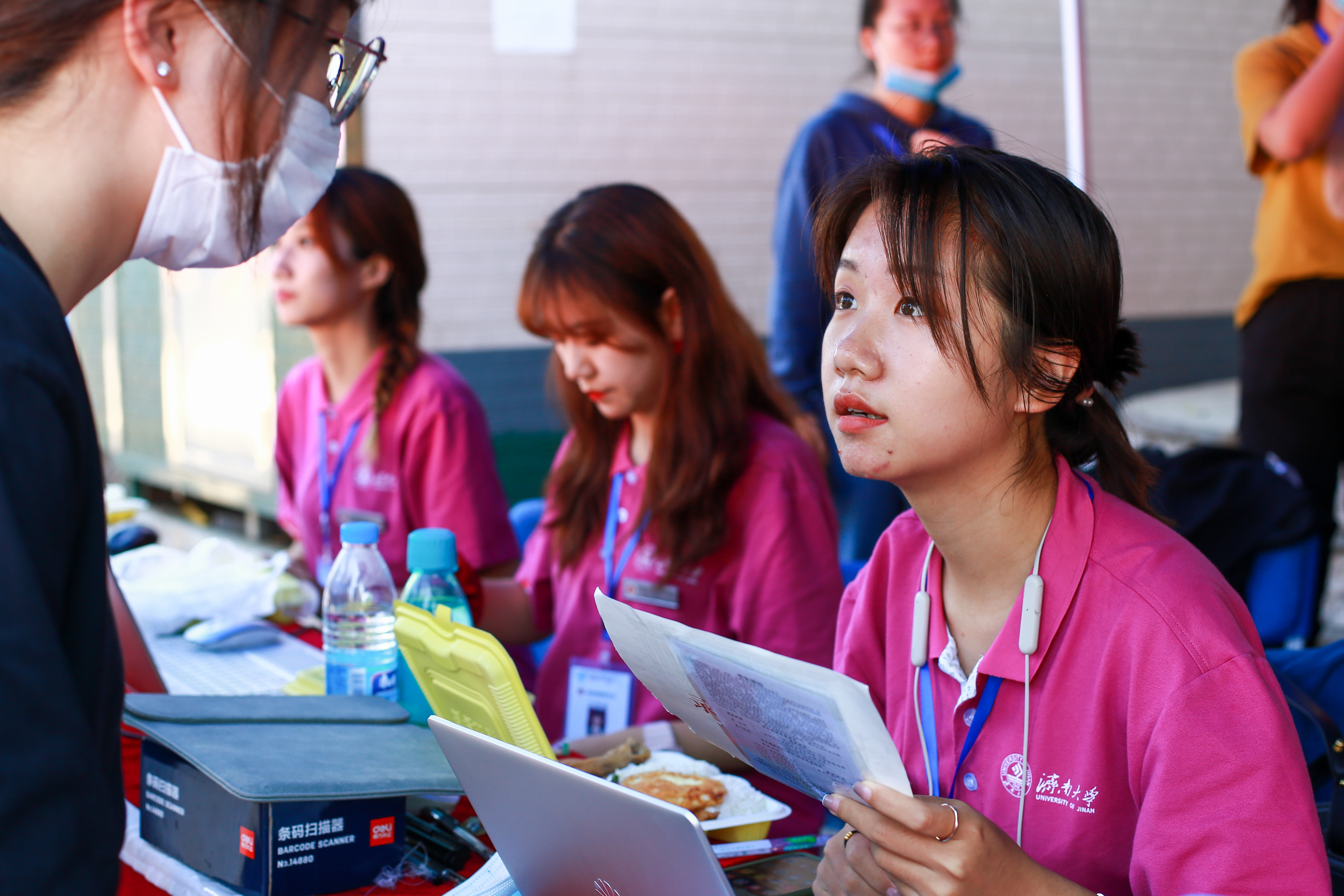 9月16日,清晨的新生接待处,师生代表和志愿者们早早地等候着新生的到来。接待处分别设立了迎新扫码站,为新生办理报到手续、发放报到材料、开展迎新活动,到处都是忙碌的身影。
