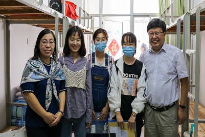 迎新当天,学院领导来到南苑迎新现场,看望前来报到的新生和家长,亲切慰问奋战在迎新一线的老师们和学生志愿者们。在学院迎新报到点认真查看了学院精心为新生准备的小礼包,详细了解迎新工作流程和新生报到情况,并与志愿者以及2020级新同学、家长亲切交谈、合影留念,为他们送上诚挚问候。学院领导还深入学生宿舍看望初入校园的新同学,一步一个脚印,一屋一声慰问,给每一个新生宿舍都带去了最温暖的关怀。