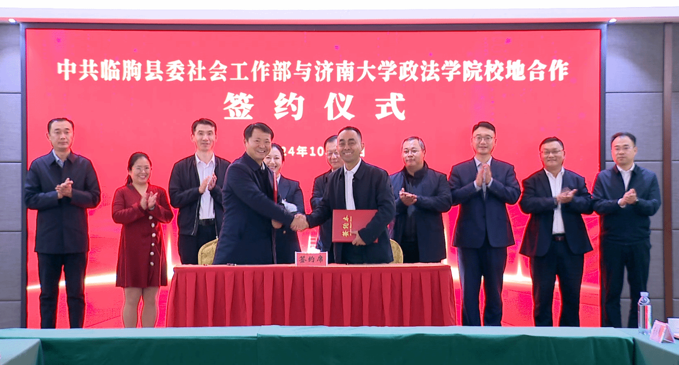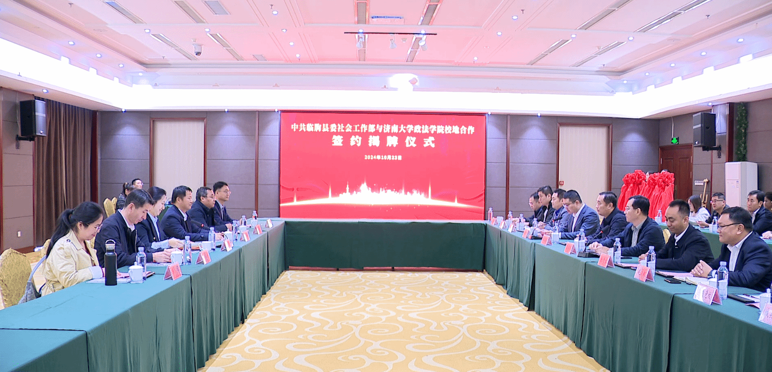 与中共临朐县委社会工作部校地合作签约揭牌仪式在临朐县成功举行。学院院党委书记李春慧,院长高功敬,副书记副院长李涛,社会学系教师代表,临朐县委常委、政法委书记李守成,临朐县委办公室副主任、县委社会工作部部长、县委“两新”工委书记唐行宝等社会工作部领导班子成员,城关街道、东城街道、县直有关部门分管负责人,东城街道城市社区党组织书记、社区工作者代表等30余人参加仪式。