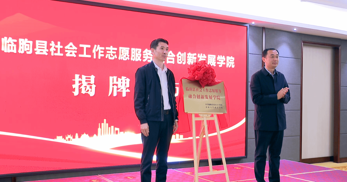 随后,双方代表依次为“党建共建基地”“临朐县社会工作志愿服务融合创新发展学院”“毛巾哥