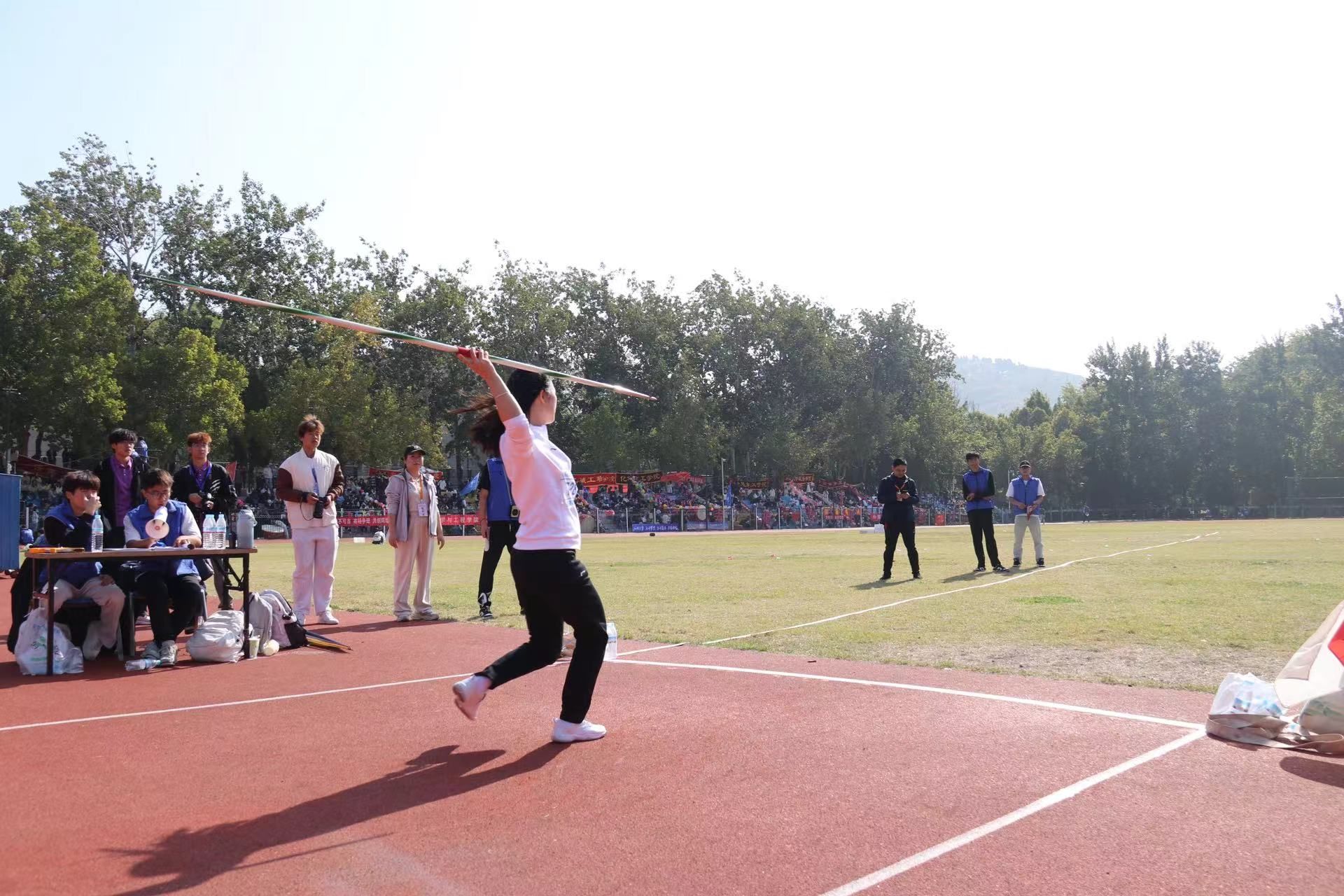运动会正在如火如荼地进行着,其中,女子教工青年组标枪决赛进行的格外激烈,引人注目。