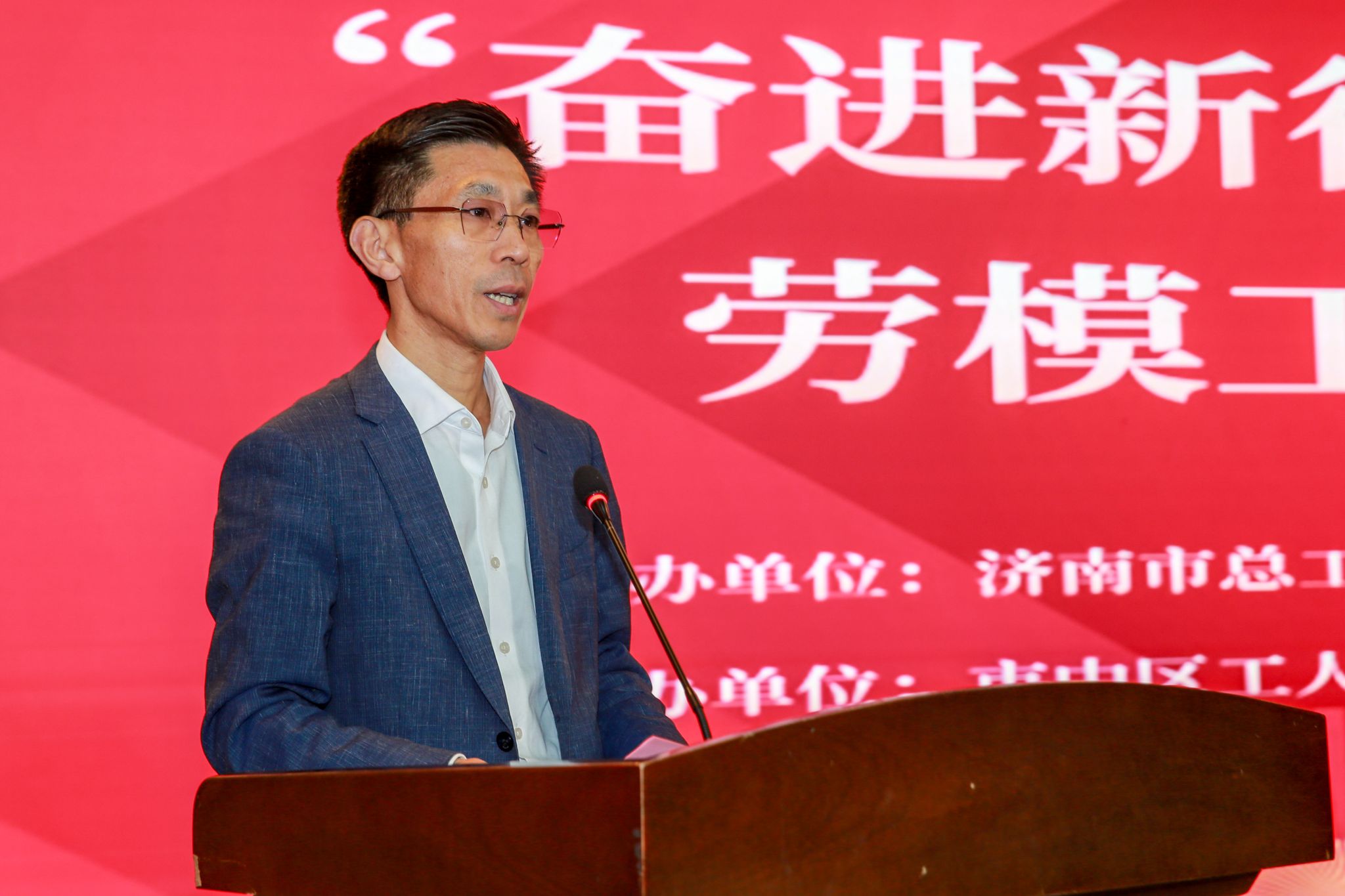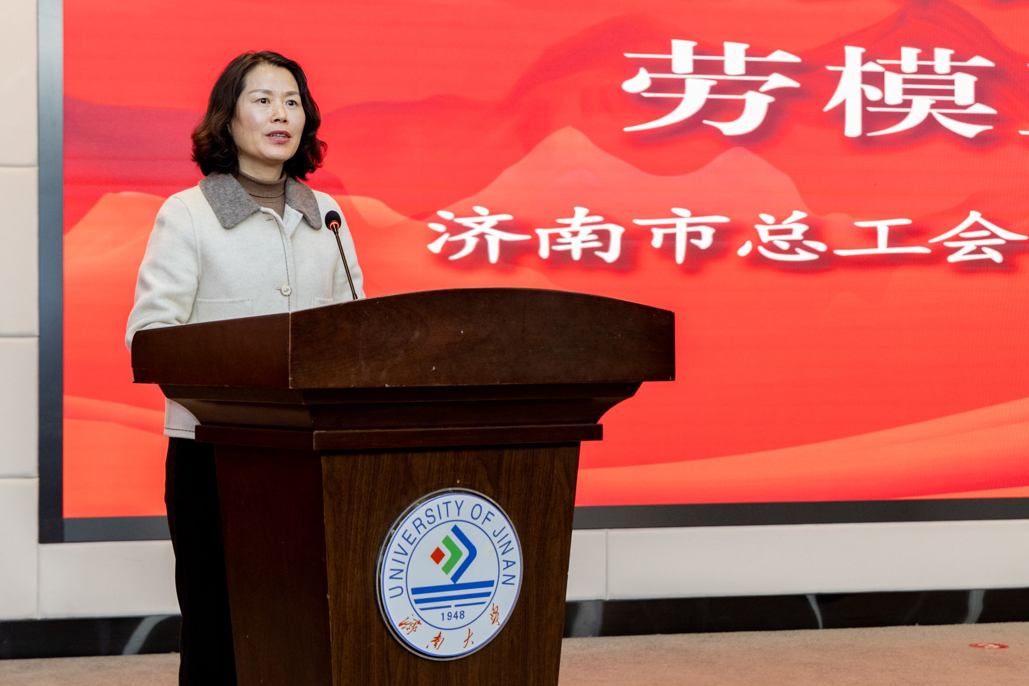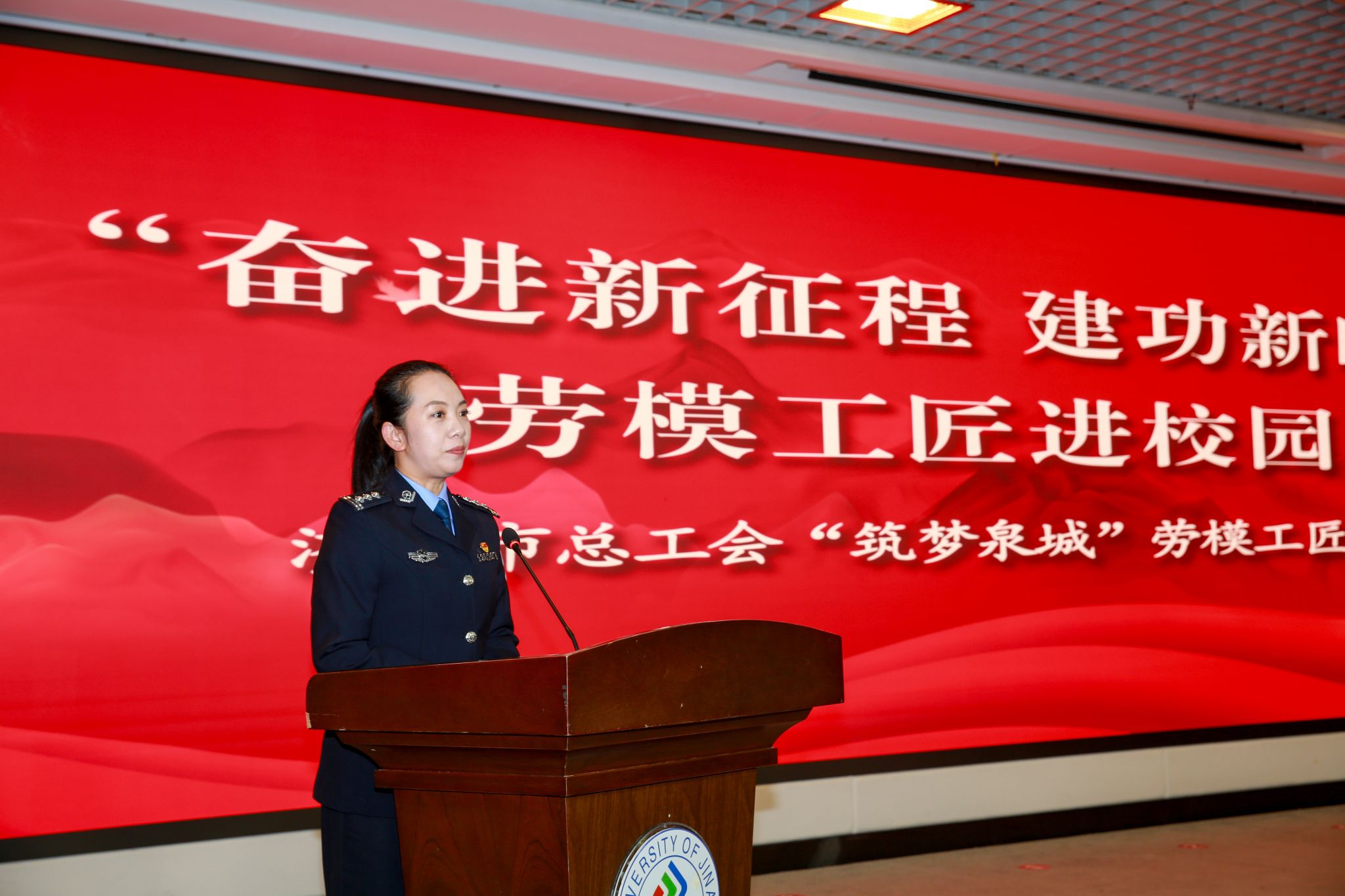 联合济南市市中区总工会、七贤街道总工会邀请济南市总工会“筑梦泉城”劳模工匠事迹宣讲团来我校开展“奋进新征程 建功新时代”劳模工匠宣讲活动。党委常委、副校长李强,济南市总工会宣教部二级调研员张昭力,党委学生工作部(处)部(处)长卢旺,毛巾哥