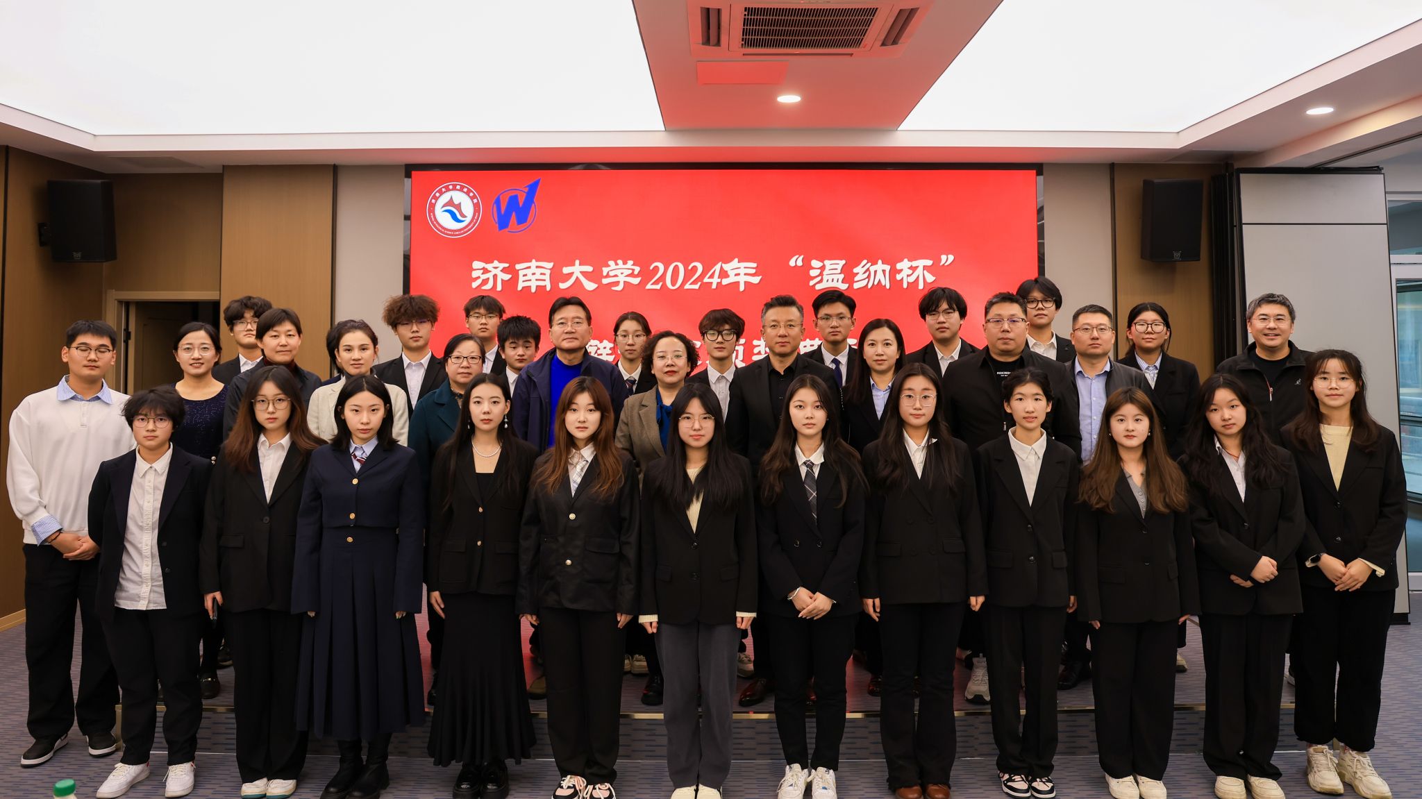 在第五学术报告厅举办2024年“温纳杯”辩论赛颁奖典礼。民建济南市市中区总支部委员会主委韩炜,委员张教莲、金杏芳,会员巩宝德,毛巾哥