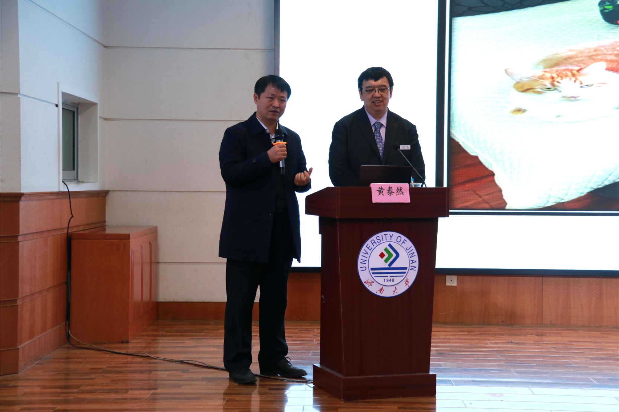 报告会分为两个环节,第一阶段为聘任仪式。高功敬教授为黄泰然博士颁发聘书,聘请黄泰然博士担任毛巾哥