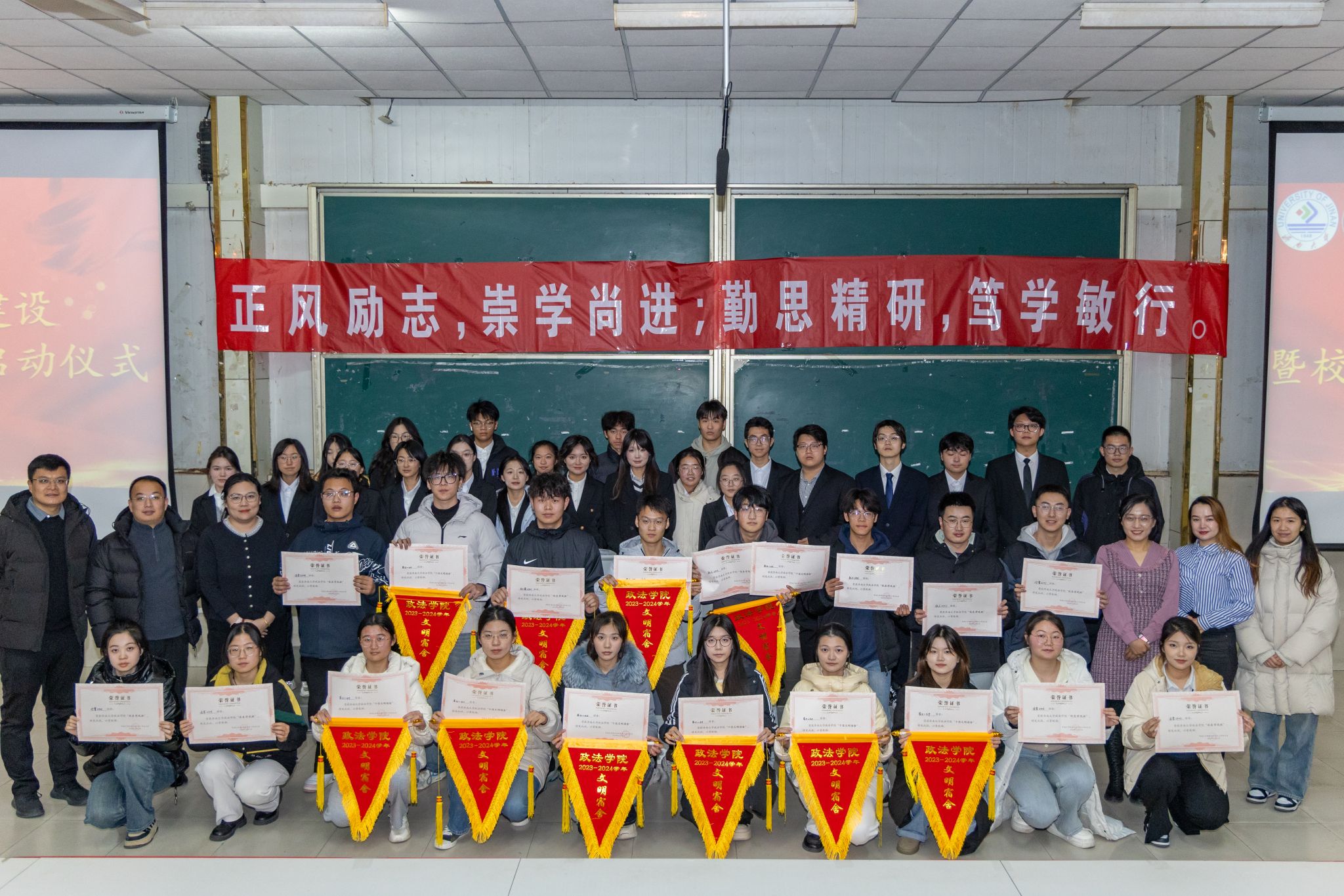 李涛在仪式上提出活动倡议,他指出良好学风是学校生存与发展的根本支柱,为同学们未来的人生道路奠定坚实基础,校园文明安全是学校稳定发展的基石,关乎每一位师生的切身利益,我们不仅要在学术的海洋中遨游,更要在安全和谐的校园环境中茁壮成长。因此,他呼吁同学们养成良好学习习惯,学会主动学习,加强交流探讨,积极诚信考试,通过培育良好学风,夯实成长之基。同时,强调要保持公寓卫生,防范消防隐患,遵守管理规定,提升反诈意识,不断提高安全意识和自我保护能力,筑牢安全防线。希望全体同学以此次活动为契机,积极行动起来,从自身做起,从身边的小事做起,为打造一个文明、和谐、安全、有序的校园环境而努力!