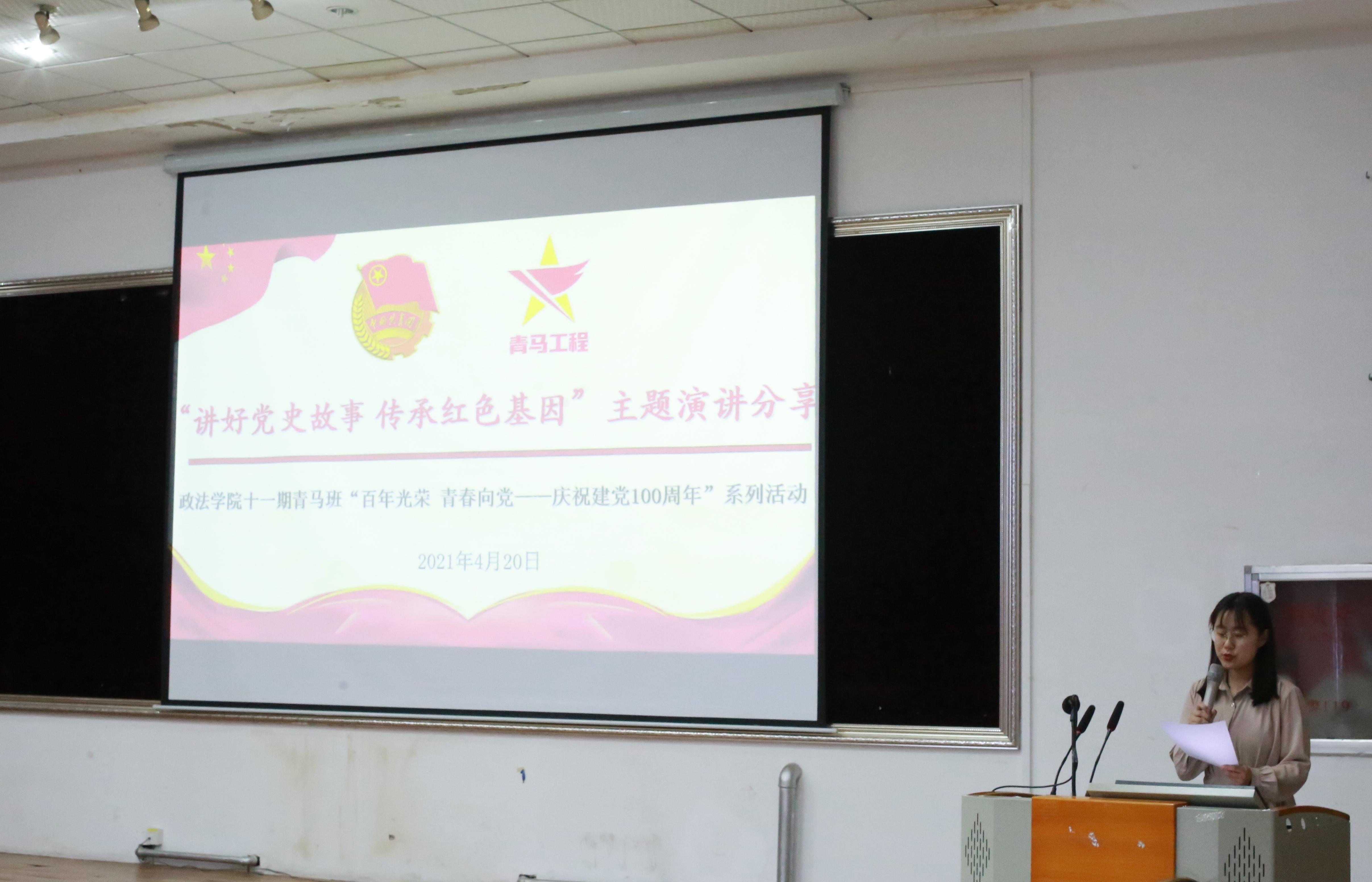 第十一期“青马班”在第四教学楼模拟法庭举办了“讲好党史故事 传承红色基因”庆祝建党100周年主题团日活动。学院团委书记、青马班班主任晁素娜及全体青马班学员参加活动。活动由青马班团支书王淑杰主持。