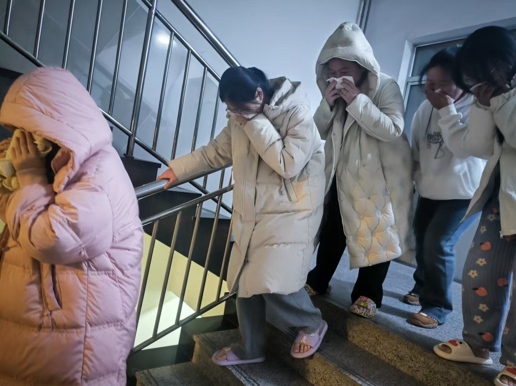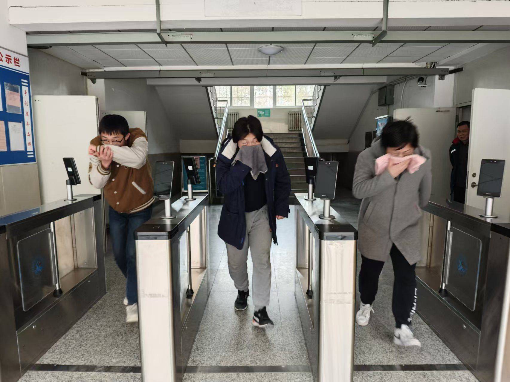 当日下午15点,随着公寓楼管员启动消防警报系统,演练正式拉开帷幕。瞬间,烟雾弥漫在预设着火区域,模拟火灾场景逼真呈现。学院师生迅速反应,投入疏散行动。男生们展现出果敢与担当,互相提醒用湿毛巾捂住口鼻,或搀扶着行动稍缓的伙伴。女生们亦冷静有序,大家皆以湿毛巾捂口鼻,低姿依循疏散指示与引导员指引,稳步撤离。各楼层引导员坚守岗位,有力指挥,保障疏散过程快速且有条不紊。很快,全体人员安全抵达学 33 公寓后的空旷地集合,各班级精准清点人数并上报,整个疏散流程迅速有序,充分展现出师生良好的应急素养与平日演练成效。